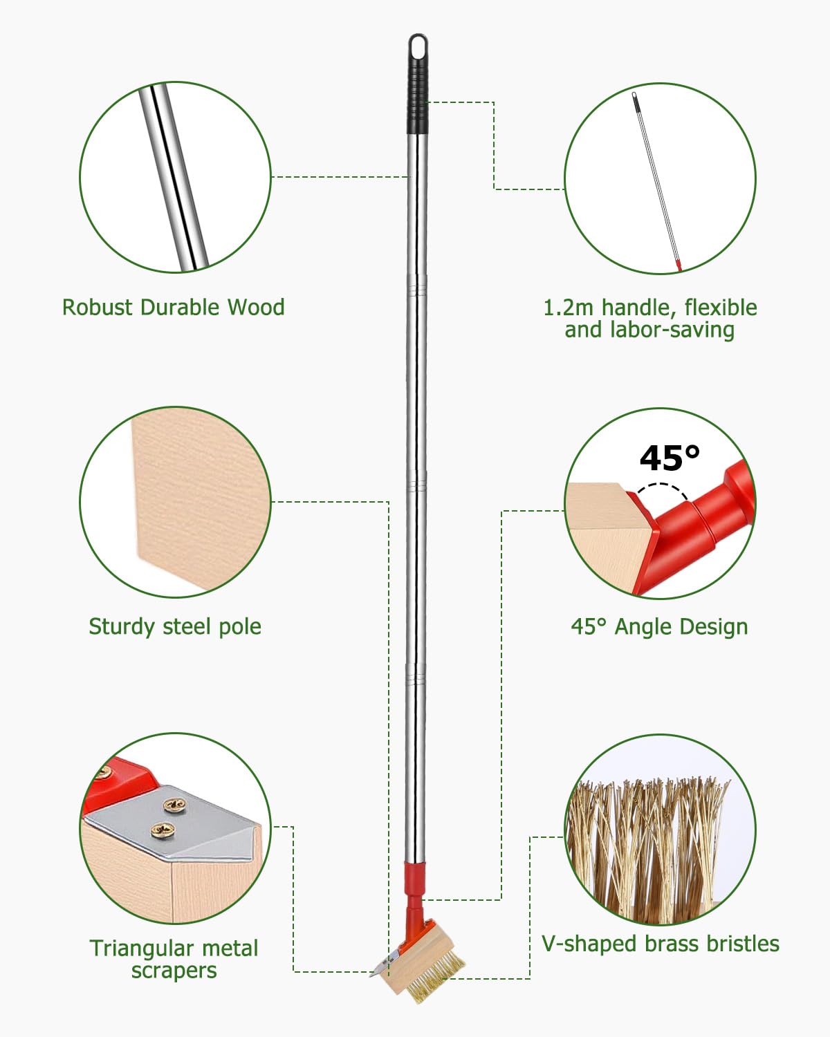 Il est équipé d'une poignée en acier inoxydable de longueur réglable, vous pouvez donc ajuster librement la longueur en fonction de vos besoins de taille ou de désherbage, en réduisant le pliage et en protégeant la santé de la taille et du dos. Pour les mauvaises herbes enracinées profondément, desserrez simplement les racines avec une spatule et nettoyez-les avec une poignée triangulaire. Brosse à mauvaises herbes avec manche Hendrik Jan Pour toutes les crevasses et fissures]Cette brosse anti-mauvaises herbes pour terrasse adopte un design 2 en 1 avec des poils en laiton en forme de V et un... Applicabilité large: la tête de brosse à bois est équipée de poils en laiton en V, qui sont durables et adaptés aux terrasses de nettoyage, de pavés, de sentiers, de trottoirs, d'allées et de zones murales. Brosse À Mauvaises Herbes en Nylon - Universelle - Jaune - 5Pcs Access Il peut éliminer efficacement les mauvaises herbes, la mousse, la saleté et les mauvaises herbes des espaces de pavage et d'autres zones de jardinage. Cet outil polyvalent combine une brosse métallique avec une spatule de pointe en métal pour un nettoyage et un désherbage efficaces. Dianhelloya Brosse de Désherbage 2-en-1 avec Manche Télescopique, Outil de Désherbage en Acier Inoxydable pour Patio, Pavés, Briques, Réglable 17-59 Pouces, Design Ergonomique, Nettoyeur de Mousse et Débris Retirez facilement les mauvaises herbes et la mousse dans les lacunes et les coins du pavage. Facile à utiliser: desherbeur est livré avec des tiges d'acier à 4 segments (135 cm au total) pour un assemblage facile et est suffisamment fort pour éliminer les mauvaises herbes des coutures du jardin. Conception triangulaire: La tête de brosse en bois est équipée d'un grattoir en métal triangulaire.