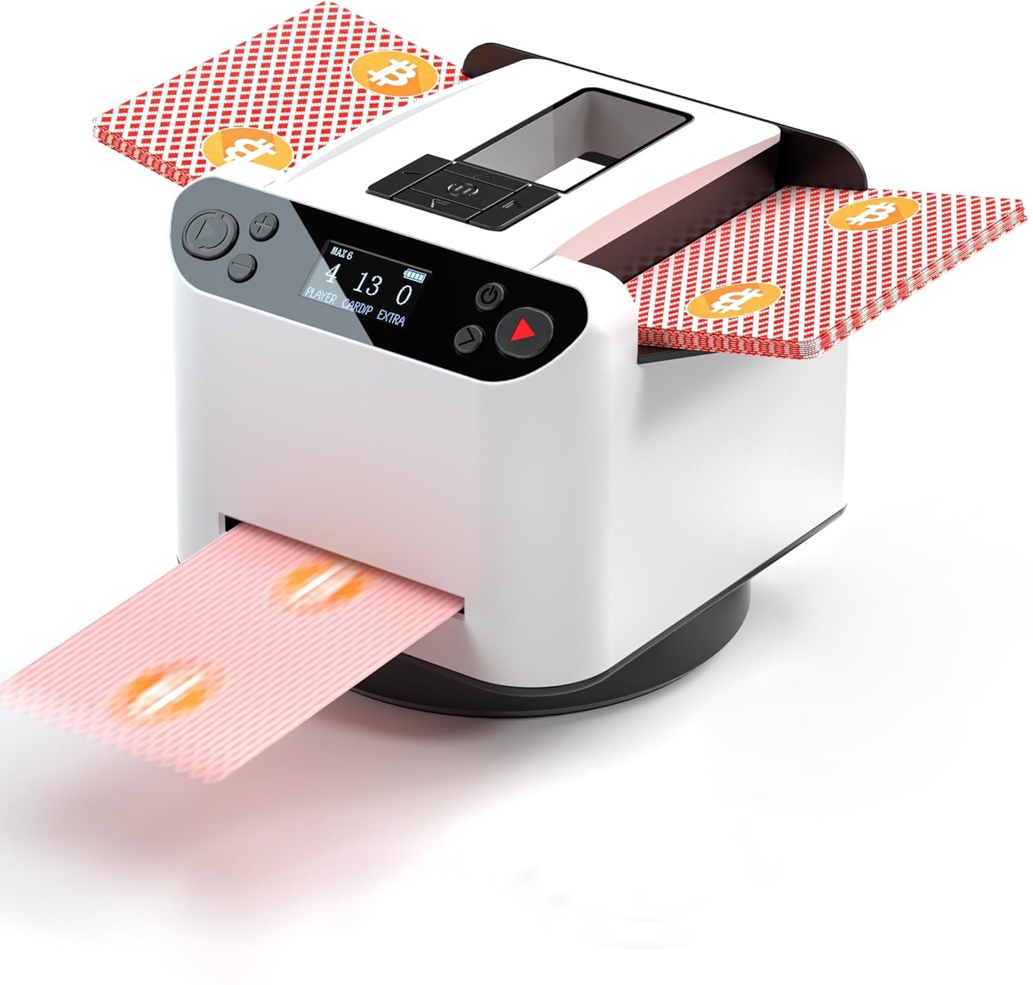 Fonctionnement silencieux et rechargeable : Profitez d’un mélange silencieux grâce à une technologie discrète et d’une longue autonomie avec chargement USB-C – jouez sans interruption et sans bruit parasite Gain de temps assuré, fluidité de jeu garantie et concentration totale sur la partie – idéal pour tous les jeux de cartes Télécommandes pratiques : Quatre télécommandes incluses pour demander facilement des cartes pendant la partie sans interrompre le jeu – particulièrement pratique pour les grands plateaux de jeu Mélangeur Distributeur Cartes Automatique , Mélangeur De Carte Automatique Avec Mélangeur Et Distributeur De Carte Melangeur de Carte électronique et Distributeur de Cartes à Jouer, 2 en 1 avec Rotation 360 ° et 4 Télécommandes sans Fil, pour Poker, Blackjack et Jeux de Cartes Distributeur carte SKYJO sabot Distributeur De Carte Automatique