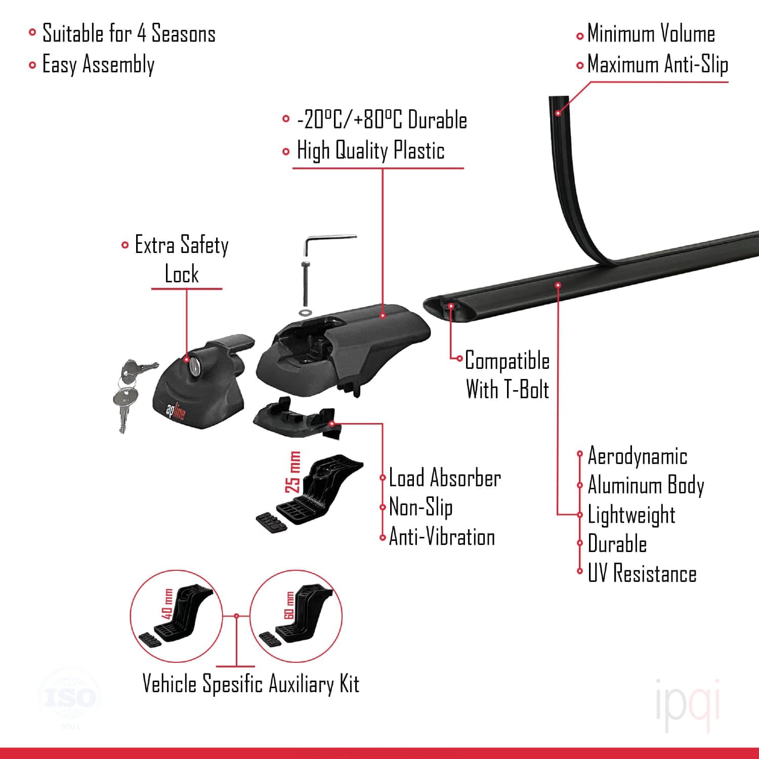 Compatible Avec Volkswagen Caddy (2K) 2003-2019 ACE-3 Barres De Toit Railing Porte-Bagages De Voiture Noir Aluminium 2 Barres - Accessoires Automobiles (OMAY