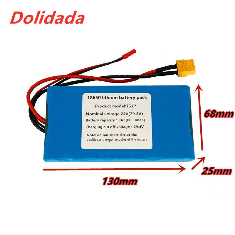 Accu 7S1P BMS XT60 JST Dimensions 130x68x25mm Batterie Trottinette électrique Pour Razor E300 - Batteries Accumulateur Scooter électrique Bms Chaque batterie est entièrement chargée et déchargée avant de quitter l'usine afin de garantir la puissance que vous attendez. La batterie 24 V pour vélo électrique intègre un BMS, ce qui la rend plus fiable, puissante et durable. Son taux d'autodécharge extrêmement faible permet de maintenir la puissance pendant les périodes d'inactivité, garantissant ainsi d'excellentes performances à long terme Paramètres de la batterie : batterie au lithium 24 V 8000 mAh, taille : 130 mm x 68 mm x 25 mm, applicable à tous les appareils 29,4 V CC de moins de 150 W Nous sélectionnons soigneusement les matériaux et les testons rigoureusement pour garantir leurs performances et leur durabilité. Pour toute question, n'hésitez pas à nous contacter. Batterie 24V 8Ah pour Vélo Électrique, 24V 8000MAh 7S1P E Son taux d'autodécharge extrêmement faible permet de maintenir la puissance pendant les périodes d'inactivité, garantissant ainsi d'excellentes performances à long terme. Vélos électriques, scooters, etc. Dimensions : 130 mm × 68 mm × 25 mm. La batterie pour vélo électrique est fabriquée en PC et ABS résistants. Poids (kg) : environ 400 g. La batterie 24 V pour vélo électrique intègre un BMS, ce qui la rend plus fiable, puissante et durable. Cette batterie peut être utilisée sur des trottinettes électriques, etc. Batterie Li-ion 24 V, tension/capacité nominale : 24 V 8 000 mAh.