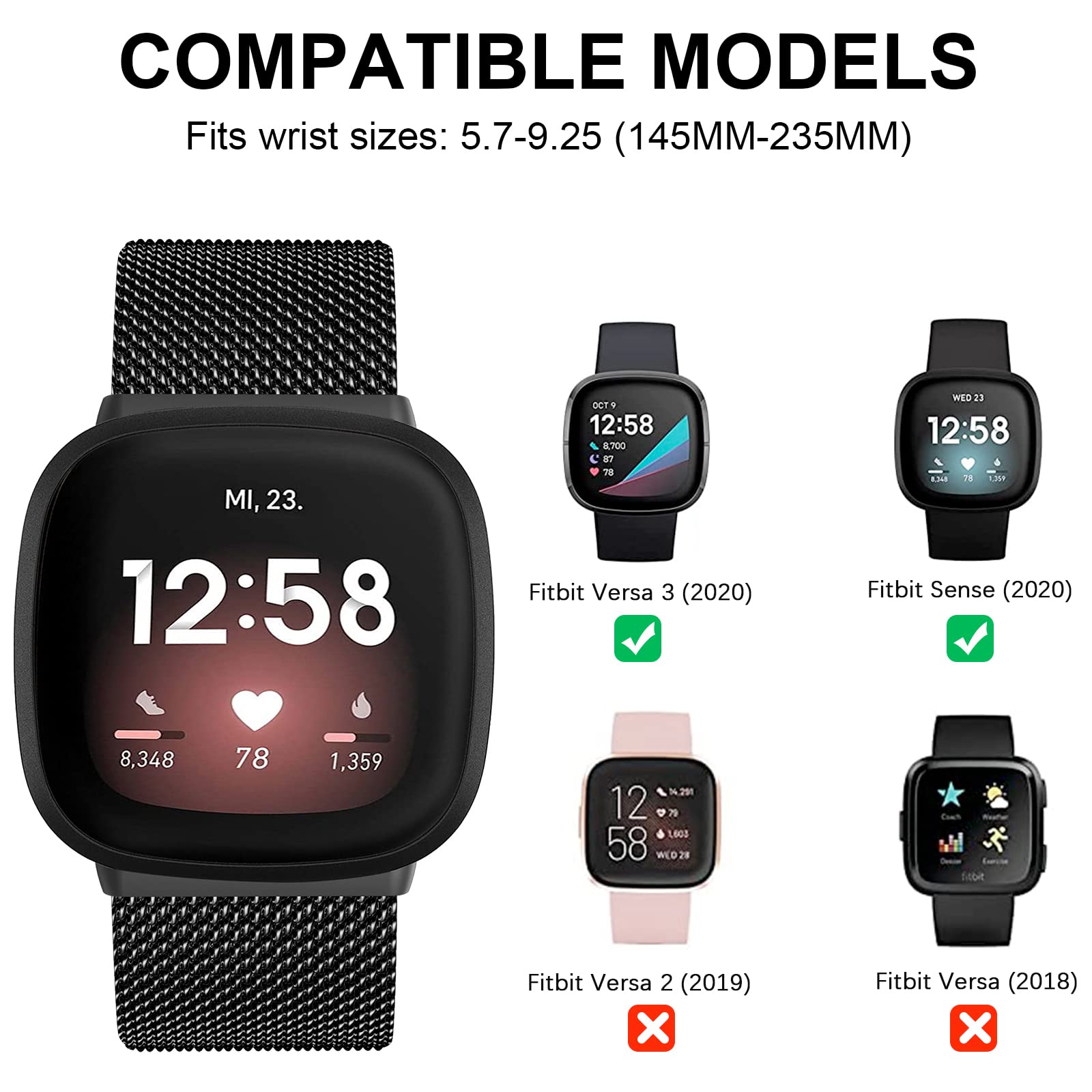Wanme Métal Bracelet Compatible pour Fitbit Versa 3/Versa 4/Fitbit Fitbit Sense 2 Charlam Métal Band Compatible Avec Bracelet Fitbit Versa 3, Bracelets Versa 4 Pour Femmes, Bande Magnétique Réglable En Acier Inoxydable Pour Fitbit Sense, Sense 2, Argent Bracelet Acier Inoxydable Magnétique Ils peuvent être adaptés à une variété d'occasions quotidiennes et de tenues assorties, et constituent également un excellent cadeau pour les mères, les épouses, les filles et les amies Design en forme de X:Le Charlam bracelet fitbit versa 3 pour femmes présente un design unique de connecteur en forme de X qui combine l'élégance, la sophistication et la mode. Taille pour 138 mm - 205 mm (5,43 - 8,07 pouces), convient à la plupart des poignets féminins Charlam 4 Pack Bracelets Compatible avec Bracelet Fitbit Versa 3/ Versa 4/ Bracelet Fitbit Sense/Sense 2, Silicone Souple Mince Dentelle Respirant Bracelet pour femmes et filles Design évidé en dentelle florale chic: Charlam Bracelet de remplacement est compatibles avec bracelet fitbit versa 3 ajout Matériau métallique de qualité supérieure : Les bracelet versa 4 pour femmes sont fabriqués en acier inoxydable lisse avec des bords finement polis, ce qui améliore la résistance du métal à la rouille et à la décoloration, et réduit les risques de rayures ou d'accrochage sur les vêtements. Bracelet Loop Alpine pour Fitbit Versa 4 Bleu - Accessoires bracelet et... Le bracelet en acier inoxydable est fait d'un tissu respirant, doux, confortable et respirant, qui convient parfaitement aux personnes à la peau sensible Idéal pour les occasions formelles ou décontractées, il peut mettre en valeur votre tenue et souligner votre noblesse et votre élégance