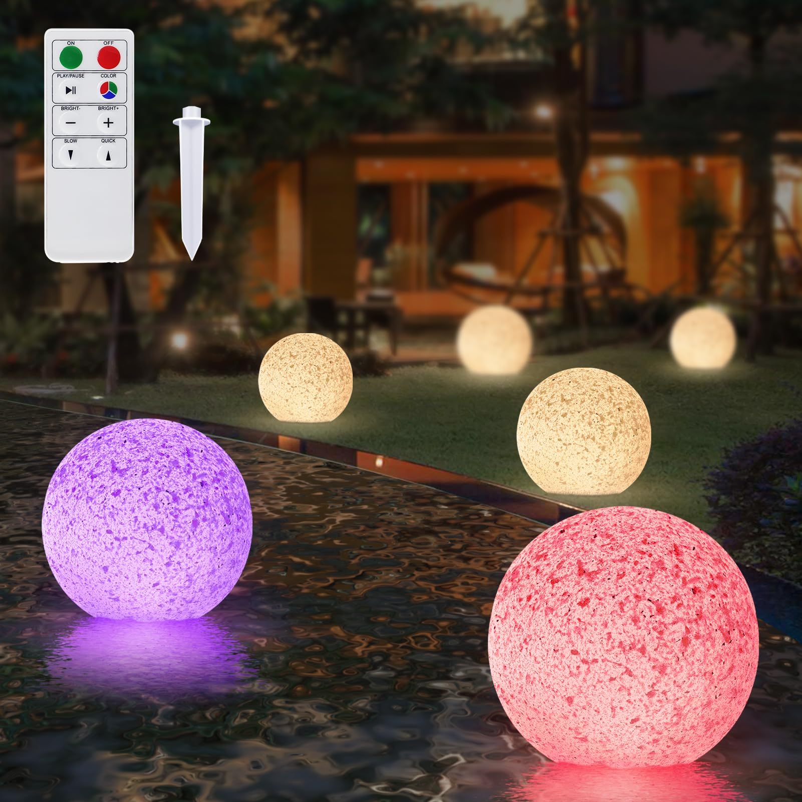 Pour un meilleur effet de lumière, veuillez placer le dôme solaire à la lumière directe du soleil pendant une période plus longue. ☀【Facile à utiliser】 : gonflez simplement la lumière LED de la piscine. Les modules solaires cachés dans la sphère convertissent l'énergie de la lumière directe du soleil en énergie - aucune électricité n'est requise. ☀【Utilisations multiples】 : nos lampes solaires de piscine peuvent être facilement insérées dans le sol, flotter dans la piscine, être suspendues à l'arbre dans le jardin ou posées sur la table. ☀ 【 Économie d'énergie et longue durée de vie 】 : boule d'éclairage LED 100 % solaire auto-chargeante. Lampe Solaire LED Boule Flottante pour Piscine et Jardin - FAFEICY Parfait pour une utilisation intérieure et extérieure. Après de nombreuses expériences, ces lumières flottantes de piscine de nuit peuvent résister à de fortes pluies et à des vents violents. Entièrement alimenté par l'énergie solaire : Stocke l'énergie solaire pendant la journée pour une performance optimale et une activation automatique. Ces lampes flottantes pour piscine offrent un éclairage fiable sans intervention manuelle, pour une expérience pratique Sphère LED Flottante Piscine 40cm Bseical Lumière Flottante Pour Piscine Solaires,IP67 étanche Boule Lumineuse Exterieure Il peut fonctionner jusqu'à 8 à 10 heures lorsqu'il est complètement chargé en plein soleil. Les flotteurs à LED sont plus durables et suffisamment solides pour que les invités puissent les lancer. BULY 20 cm Boule lumineuse décorative très résistante automatique. Charge solaire et lumière LED blanc froid. Fabriqué en Espagne. EN STOCK : Boule lumineuse flottante pas cher. Grand choix, promos permanentes et livraison rapide partout en France. Paiement sécurisé Les globes solaires créent un spectacle de lumière flottant pour vous dans votre piscine. ☀【IP68 IMPERMÉABLE À L'EAU ET AUX INTEMPÉRIES】: Nos boules de piscine à LED sombres sont conformes à la technologie IP 67; entièrement étanches à l'eau et à la poussière. Placez-les dans la piscine et accrochez-les sur le porche pour un effet spectaculaire., 3., Les couleurs en constante évolution offrent une excellente stimulation visuelle, transformant tout rassemblement en une célébration délicieuse., 4., Aucun câblage ou installation requis, laissez simplement la boule lumineuse se charger pendant la journée, puis briller de mille feux la nuit. Parfait pour toutes les soirées à thème, jardins, terrasses, pour égayer votre chemin et renforcer l'ambiance festive, notamment pendant la période de Noël.
