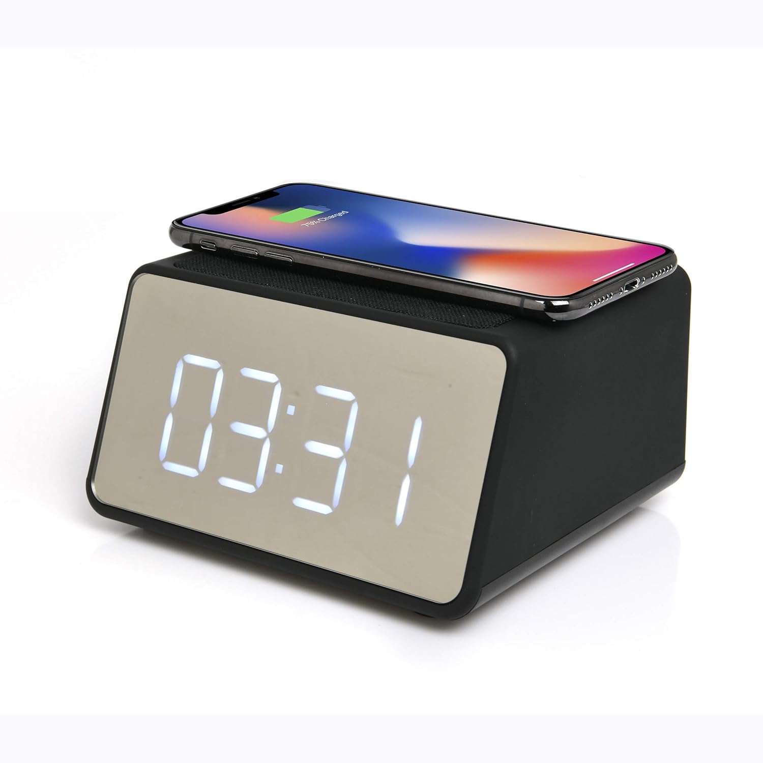1 Veilleuse 2 Luminosité réglable 3 Présentation des boutons Découvrez notre test du chargeur induction Colsur comprenant une enceinte Bluetooth intégrée et un radio réveil, alliant performance et design moderne pour une expérience sans fil optimale 【Charge sans fil rapide 15 W】 Il prend en charge la charge adaptative 5 W/7,5 W/10 W/15 W, vous permettant de charger votre smartphone rapidement et facilement. Pas besoin de choisir manuellement. La batterie de 2400 mAh a une longue durée de vie. Enceinte Bluetooth 5.3 Haut-parleurs Stéréo COLSUR Chargeur Induction Avec Enceinte Bluetooth, FM Radio Echo Pop Lorsque vous utilisez la fonction de charge sans fil, veuillez connecter l'adaptateur secteur. Le radio-réveil Bluetooth synchronise également automatiquement l'heure avec votre téléphone. Grâce à l'écran LED à 3 niveaux (0 %-30 %-70 %-100 %) à intensité variable, vous pouvez trouver la luminosité parfaite et éviter une lumière trop vive pendant la nuit. Il dispose également d'un port USB supplémentaire et d'un port Type-C pour recharger d'autres appareils électroniques, tels qu'un deuxième téléphone, un adaptateur secteur ou une montre connectée., 【Double haut-parleurs Bluetooth 5., 3】Profitez d'une performance sonore améliorée grâce à des haut-parleurs stéréo de 10 W et un caisson de basses passif pour des basses plus riches., La version Bluetooth 5., 3 offre une portée sans fil plus longue de 10 mètres, et les deux haut-parleurs permettent au son de voyager plus loin. Réveil Numérique avec Chargeur sans Fil | Lynia Et les lumières RGB clignotent au rythme de la musique. Le radio-réveil Bluetooth synchronise également automatiquement l'heure avec votre téléphone. [Veilleuse à 3 niveaux] Cette enceinte Bluetooth avec radio offre 4 niveaux de luminosité différents pour la chambre à coucher (sans lumière, faible, moyen, élevé