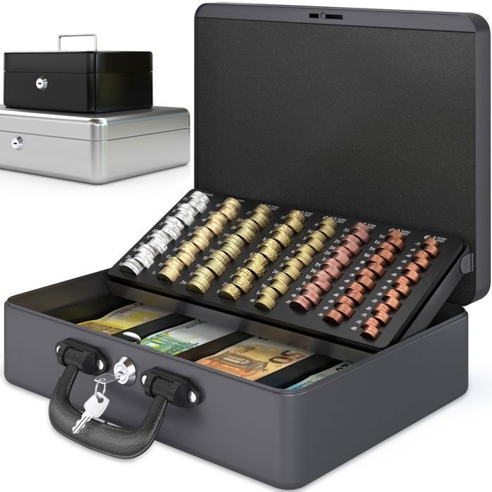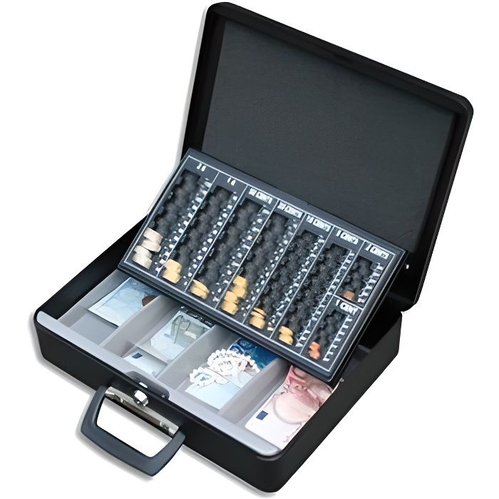 Promo Caisse à Monnaie à Code Pavo chez Calipage en acier robuste, fermeture à cylindre de sécurité avec 2 clés, poignée escamotable, compartiment pour pièces de monnaie inclus, avec 6 compartiments (8011861 Caissette en acier 15 cm avec compartiment en plastique pour pièces de monnaie Fourni avec deux clés. Veuillez conserver le reçu. Nous utilisons une sélection de services d'expédition locaux Caisse Enregistreuse Professionnelle Caisse à Monnaie - PAVO - Métal - 2 Clés - Plateau Amovible Boite A Argent serrure cylindrique 2 clés , Garantie : 2