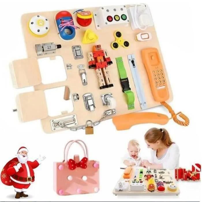 Les tout-petits peuvent apprendre l'orthographe et les chiffres grâce aux lettres, aux chiffres et aux jeux d'enfilage Et les coutures sont renforcées pour garantir qu'elles ne tombent pas facilement et sont suffisamment durables pour résister à l'utilisation par de jeunes enfants., 2., La planche d'activités pour tout-petits est légère et dotée d'une poignée, ce qui la rend pratique à transporter et à jouer pour les enfants. Apprendre en jouant : les tableaux sensoriels aident les jeunes enfants à développer des compétences importantes grâce au jeu. Cadeau Parfait : Le montessori busy board est bien fait et de haute qualité, avec de jolis motifs et des lettres d'animaux sur la couverture. Elle peut occuper les tout-petits pendant des heures et les aider à développer des compétences de base par le jeu. Busy Board Montessori,20 Compétences Motrices de Base,avec Sac de Facile à Utiliser et Bien Fait : Conçu pour les petites mains, ce jouet Montessori est bien construit et de la bonne taille pour les garçons et les filles âgés de 1 à 4 ans. Chaque composant est solidement fixé à la carte pour garantir sécurité et durabilité. Un jouet sensoriel que votre enfant devrait avoir ! Il contient 8 pages souples Jouet 2 Ans Busy Board Montessori - Jouets Pour Tout-petits De 1 à 3 Ans Jouet Sensoriel Voyage 1-4 Ans Les pages de formes assorties et les puzzles favorisent la reconnaissance et l'imagination. Et il peut s'adapter à la plupart des sacs à couches ou cartables. Découvrez le Busy Board Transformez l'apprentissage en jeu avec le Busy Board en apparence de volant et tableau de bord de voiture. Conçu spécialement pour éveiller et stimuler la motricité et l'ingéniosité de vos enfants Liste des paquets : 1 livre activite bebe Avertissement De Sûreté Non applicable Jouet de voyage sûr et portable : le busy board montessori est fabriqué en tissu feutre de haute qualité, garantissant durabilité et sécurité pour les enfants. Il est doux et n'a pas de coins durs, ce qui ne blessera pas votre bébé. un cadeau idéal pour les anniversaires, noël et autres occasions spéciales pour les garçons et les filles âgés de 1 à 4 ans, il enseigne aux enfants les compétences de base par le jeu et les occupe pendant des heures tout en développant les compétences motrices fines essentielles