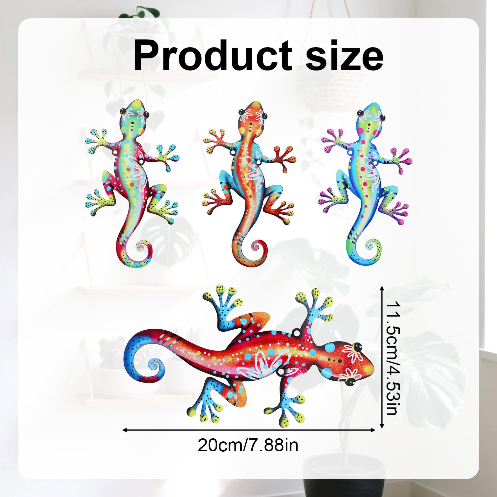Installation sans effort : avec un design de montage mural convivial, ces pièces de décoration murale gecko en métal peuvent être facilement accrochées sur diverses surfaces. Aucun outil complexe n'est nécessaire Qu'ils soient placés à l'extérieur au soleil ou à l'intérieur comme accents muraux, ils apportent de l'énergie et du style à n'importe quel cadre. Décoration Murale Gecko Métal Coloré JARDIN ANIMAL SILHOUETTE Métal âne Cour Art Pour Extérieur Cour Maison Salamandre Murale Exterieur En raison de la différence entre les différents moniteurs, il peut exister une légère différence de couleur. Idéal pour créer une atmosphère paisible et décorative dans votre jardin, votre porche, votre couloir ou votre salon. Grand choix de cadeau: un délicieux cadeau pour les amateurs de jardin et les amateurs de décoration intérieure. Ce qui est inclus: vous recevrez 4 pièces d'art mural en métal en métal vibrant, ainsi que 8 vis et 8 ancres murales pour une installation facile. Chaque gecko comporte deux trous de montage, vous permettant d'ajuster l'angle suspendu en fonction de votre espace Sculptures en métal pour embellir votre espace - Test et Avis Humid-Resistant et robuste, ils sont parfaits pour une exposition intérieure et extérieure - sur les clôtures de jardin, les patios, les balcons ou les murs intérieurs. Charme inspiré de la nature: La conception de gecko ludique mais élégante ajoute une sensation apaisante et inspirée de la nature à votre espace. Chaque gecko comporte deux trous de montage, vous permettant d'ajuster l'angle suspendu en fonction de votre espace.