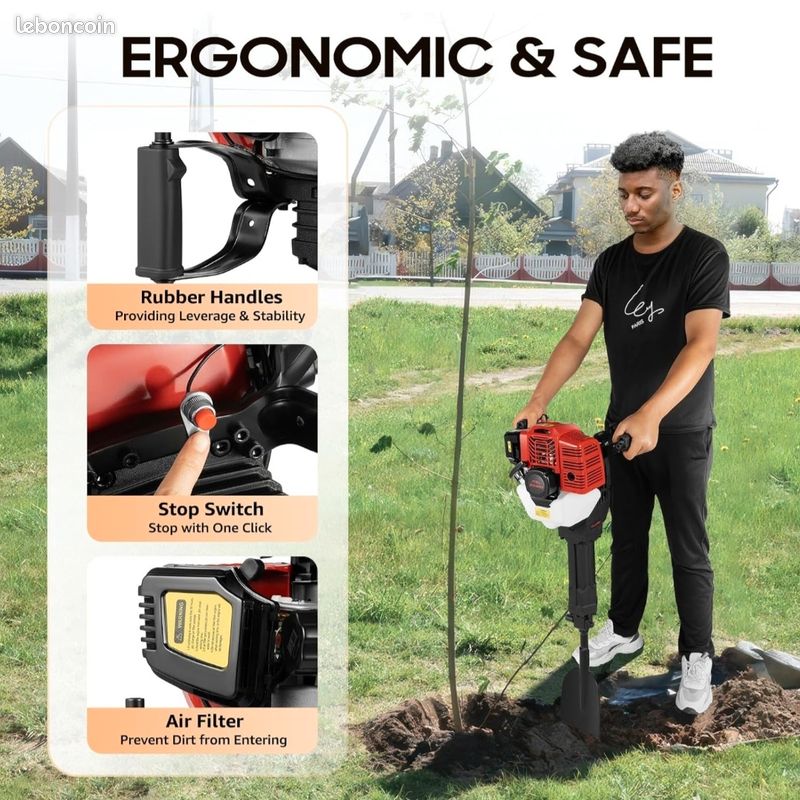 Vous pouvez facilement soulever des arbres ou creuser rapidement un trou. Capacité du réservoir de carburant : 1,3 l/0,343 gal. Dimensions de la pelle (L x l) : 29 x 14 cm. Avertissement De Sûreté Veuillez mettre la sécurité en premier lieu et toujours utiliser l'appareil selon les instructions du manuel d'utilisation (français non garanti). Machine à creuser des trous pour plantes, très vendue, pour la plantation d' arbres dans les fermes, tarière à terre, perceuse à glace Nombre de marteaux: 1500 fois/min Force de frappe : 15-45J Rapport de carburant : 25:1 (essence : huile moteur). 1 manuel d'utilisation en anglais. Pince de serrage en fer : la pince de serrage en fer dur peut fixer fermement la tige de la pelle et l'empêcher de tomber pour un creusement stable et fiable. PUISSANT ET EFFICACE : il adopte un moteur à deux temps (1250 W) pour un fonctionnement plus stable. 1 bouteille de mélange de fioul., 1 pelle., 1 tige de connexion. Achetez Fraise à creuser, excavatrice d'arbre de jardin, 2 temps 52 cm³ 1,9 kW, kit de tarière à essence, pelle à essence, arbre de jardin Digger avec foret de 290 mm Contenu de la livraison : 1 corps principal., 1 entonnoir. Creuser sur une grande surface : la pelle large (11,42 x 5,51 pouces) peut creuser une grande surface à la fois. Notre pelle de jardin à essence est largement utilisée pour creuser les mottes de racines et tailler les racines dans les jardins, les fermes, les arbustes et ailleurs Caractéristiques techniques : Type de moteur : monocylindre deux temps Matériau : alliage d'aluminium, fonte d'acier, fer Procédé : peinture, forgeage intégré Type de bougie d'allumage : BM9A Système de démarrage : démarrage manuel., Puissance nominale : 1250 W. Dimensions du produit : 45 x 24 x 98,3 cm., Poids net : 16,4 kg., Poids brut : 18,2 kg. Longueur de la pince de serrage au fond de la pelle : 39 cm. Notre pelle de jardin à essence est largement utilisée pour creuser les mottes de racines et tailler les racines dans les jardins, les fermes, les arbustes et ailleurs. Pelle à Essence 2 Temps Excavatrice D'arbre De Jardin à 2 Temps 52 Cm³ | FindTheDeal Machine Creusage 2 Temps Puissance maximale : 1900 W Vitesse : 6500 tr/min., Déplacement : 52 cc. Facile à utiliser : la tige de connexion incluse dans le paquet peut être utilisée avec la pelle, la longueur de la tige de connexion est de 15,35 pouces, ce qui vous permet de creuser plus profondément, et la tige est assez longue pour économiser plus de force sans avoir à vous pencher. Description du produit Détails : Poignée en caoutchouc : la poignée en caoutchouc souple a une longueur de 4,72 pouces et est ergonomique pour que vous vous sentiez à l'aise et ne vous fatiguez pas même après une longue prise en main. HAUTE SÉCURITÉ: Les grandes ouvertures de refroidissement assurent un fonctionnement continu sans interruption et prolongent la durée de vie de la machine.