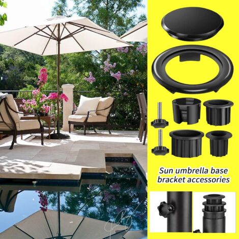Nombre de pièces : 8., Contenu de l'emballage : 3 manchons tubulaires., 2 vis., 1 manchon biseauté., 1 cache-trou pour parapluie. * Emballage complet : le lot comprend trois anneaux réducteurs, deux filetages M8, une base pour l'anneau et un trou pour parasols, fournissant tout ce dont vous avez besoin pour une installation réussie et une meilleure facilité d'utilisation. Optez pour des accessoires pour parasol adaptés à vos besoins spécifiques, tels que des pieds stabilisateurs pour une meilleure stabilité et une housse de protection pour prolonger la durée de vie de votre parasol Pied de Parasol Support Parasol en Plastique Aspect- Lestage pour... Construction : fabriqués à partir de matériau plastique robuste, ces accessoires sont conçus pour une utilisation durable tout en conservant des propriétés légères pour une manipulation facile. Support de Base de Parasol Pièce de Rechange Pratique Vis de Emballage complet : ce lot comprend trois anneaux de réduction, deux vis M8, une base R ing et un couvercle de trou de parapluie, offrant tout ce dont vous avez besoin pour une installation réussie et une meilleure utilisabilité. Installation facile : il suffit d'insérer le nombre approprié d'anneaux de réduction pour obtenir le diamètre souhaité de votre porte-parapluie sans avoir besoin d'outils, ce qui rend l'installation un jeu d'enfant. Cache-trou Parasol Plastique Support Pour Parasol Extérieur Support De Parasol, Poids De Base De Parasol De Patio, Support De Socle Pour Parasol Extérieur Kit Montage Parasol Terrasse Taille : comme sur l'image., Couleur : noir. Caractéristiques : *Options de taille polyvalentes : les anneaux réducteurs sont disponibles en trois tailles différentes (32 mm, 38 mm et 48 mm), vous permettant de choisir le meilleur ajustement pour votre porte-parapluie, pour garantir une stabilité et une performance optimales. * Installation facile : il suffit d'insérer le nombre approprié d'anneaux de réduction pour obtenir le diamètre souhaité de votre porte-parapluie, ce qui rend l'installation facile sans avoir besoin d'outils supplémentaires.