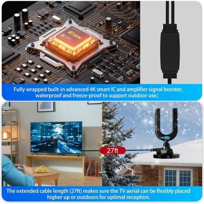 Le mode d'amplificateur commutable peut être ajusté pour s'adapter à différentes gammes. Facile à installer Connectez l'amplificateur numérique et un port USB de l'adaptateur par le câble coaxial (IEC). Si votre téléviseur ne dispose pas d'un tuner intégré, une boîte de décodeur est nécessaire pour tirer des signaux HDTV. Pour tout question, n’hésitez pas à nous contacter pour un remplacement ou un remboursement. Elle peut être cachée dans l'endroit où vous voulez le placer. Antenne TV Intérieur Puissante TNT HD - Base Magnétique et Câble 5m - Longue Réception Distance 360° - Compatible avec TVs 4K 1080P - TV Son Photo ✅【Câble 10 Mètres Longue】Grâce à une ultra-longue câble coaxial de haute performance, notre amplificateur TV peut obtenir le plus fort récepetion du signal et peut être placé presque n'importe où dans votre maison. ✅【Service d’après-vente 100% Satisfaisant】Nous fournissons un remboursement complet de 360 jours et une Garantie à vie. Une véritable antenne HDTV vous apporte une véritable HAUTE QUALITÉ! Ultra-mince, doux et léger. ❗【Note】:Le nombre de programmes TV que vous recevez dépend du nombre de programmes ouverts dans les tours de votre région. Avec TE-Voze antenne de télévision pour profiter gratuitement des réseaux populaires nationaux de télévision et les chaînes de télévision locales! ✅【600KM-Fort Réception Signal】Booster de signal d'amplificateur de nouveau type avec puce IC intelligente intégrée pour capter les signaux dans un rayon de 600 KM qui offrent une portée supplémentaire et une réception de signal maximale pour plus de canaux même vous êtes loin des tours de diffusion. TV Aerial est compatible avec les boîtiers de conversion TV et des centaines de télévisions numériques! ✅【Chaînes Gratuites 】Avec l'antenne TV AMÉLIORÉE 2025, plus besoin de payer une énorme facture à la télévision,Profitez pour toujours de centaines de programmes HDTV GRATUIT, comprenantSKY, BBC, ITV, DW, N24, WDR, France TV, RAI, RTVE and et bien plus. Antenne Tnt 2021 Neuf Version Antenne TV Intérieur,320KM Gamme Antenne Intérieure Amplificateur Intellectuel Antenne Tv Intérieur Puissante Tnt TE-Voze se concentre sur la recherche d'antenne et est responsable de chaque article, notre équipe de service professionnel pour vous offrir le meilleur support garanti N'oubliez pas:chaque fois que vous changez, vous devez scanner à nouveau !, !, !