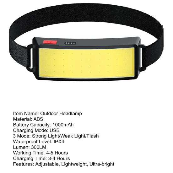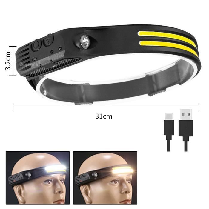 Lampe Frontale ESTINK LED COB COB Haute Luminosité Lampe Frontale Pour Course Vélo Plusieurs modes d'éclairage : avec un bouton de commande, cette lampe frontale offre plusieurs modes d'éclairage différents, offrant une polyvalence pour diverses situations. Sa taille compacte et son design léger offrent une liberté de mouvement maximale. [et pratique]Fabriqué en matériau ABS, cette lampe frontale est fiable et fiable. Il dispose d'une LED COB pour un éclairage lumineux. L'interrupteur est facile à utiliser, utilisation sans tracas Cette lampe frontale LED COB est idéale pour toutes les activités sportives en extérieur, elle est équipée d'un serre-tête réglable, elle a 3 modes d'éclairage avec une grande portée * Type d'interrupteur : appuyez sur on/off. Choisissez entre les modes très lumineux, lumineux ou stroboscopique (clignotant rapidement). Forfait F Type c Lampe Frontale Led Cob Avec Capteur, Rechargeable Par Confortable à porter : conçue dans un souci de confort, cette lampe frontale est légère et compacte, permettant un port confortable pendant toute activité. Caractéristiques du produit : * . * Facile à installer et à placer sur la tête, bouton pour contrôler plusieurs modes d'éclairage différents, rend la vie plus facile et plus sûre. Caractéristiques du produit : *Type : lampe frontale., *Matériau : ABS., *LED : COB LED. * Super léger, parfait pour le jogging, le cyclisme, la randonnée, la pêche. Sangle réglable en continu : la lampe frontale dispose d'une sangle de fixation qui peut être ajustée librement pour s'adapter à différentes tailles de tête, ce qui la rend adaptée pour les adultes et les enfants. * Poids : environ 20 g (piles non fournies). *Sangle de fixation réglable en continu, convient à toutes les tailles de tête, convient également aux enfants.