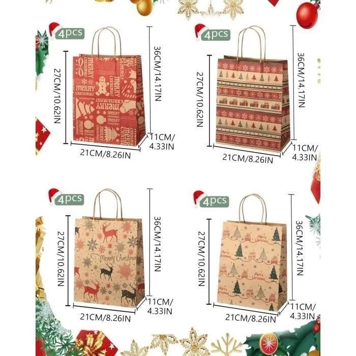 Sac Cadeau Anniversaire BELSVOR Lot De 4 Grand Sac Cadeau Noël, 4 Sacs Cadeau Noël Avec Poignées, Sacs Cadeaux De Noël, Sac Cadeau De Noël 32,5 × 25 × 17 CM, Sacs Cadeaux De Sac Cadeau Anniversaire Enfant ⛄⛄【Nouveau matériau de revêtement imperméable】 : Ces sacs cadeaux de Noël sont fabriqués à partir d'un nouveau film imperméable et la couche intérieure est en matériau non tissé. 16PCS Sacs Cadeaux de Noël - Pochette Cadeau Noel en Kraft avec... 4PCS Sacs cadeaux de Noël, sacs fourre-tout de Noël avec poignées, sacs de friandises de Noël, sacs de Noël non tissés pour emballer des cadeaux, fournitures de fête de Noël, 32,5 × 25 × 17 cm Lot de 4 Sac Cadeau Noël Ce sac cadeau magnifique et fonctionnel est parfait pour Noël. BELSVOR Lot de 4 Grand Sac Cadeau Noël, 32,5 × 25 × 17 CM 🎅🎅【Sacs cadeaux de Noël 4PCS】: Cet ensemble contient 4 sacs de Noël, la taille est de 32,5 × 25 × 17 cm, colorés et lumineux, motif de Noël, parfaits pour Noël. BELSVOR Lot de 4 Sac Cadeau Noël: Sacs cadeaux de Noël 4PCS: Cet ensemble contient 4 sacs de Noël, la taille est de 32,5 × 25 × 17 cm, colorés et lumineux, motif de Noël, parfaits pour Noël. Ces sacs cadeaux de Noël sont robustes, doux et confortables, adaptés pour ranger des jouets, des cadeaux, des bonbons, de l'artisanat et d'autres choses. Ce sac cadeau magnifique et fonctionnel est parfait pour Noël! Vous pouvez l'utiliser en toute sécurité sans vous soucier de la casse du sac. Cet ensemble contient 4 sacs de Noël, la taille est de 32,5 × 25 × 17 cm, colorés et lumineux, motif de Noël, parfaits pour Noël. Paramètre du produit : Nom du produit : 4 Grands Sacs Cadeaux de Noël. Ces sacs cadeaux de Noël ont une grande capacité et peuvent contenir diverses choses comme des bonbons, des cadeaux, des jouets, etc.