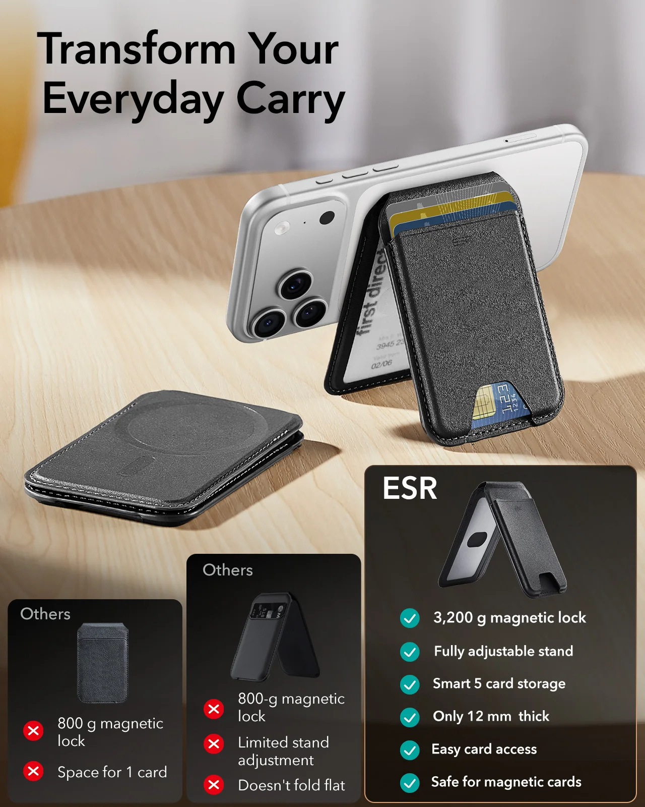 ESR Porte Carte avec MagSafe, Porte 5 Cartes, Support Réglable Porte Carte Magsafe Apple TopMade Portefeuille MagSafe Avec Support Magnétique Pour Téléphone Portable, Porte-cartes Pour IPhone 16/15/14/13/12 Series Portefeuille Magnétique Porte Carte Magsafe Soldes Portefeuille Magsafe 6 cartes le plus puissant : amélioré avec une force magnétique de 4200 g, notre portefeuille magnétique avec support est 5 fois plus résistant que les autres portefeuilles Mag Safe ESR Porte-Cartes agnétique (HaloLock), Copatible avec agSafe, avec...