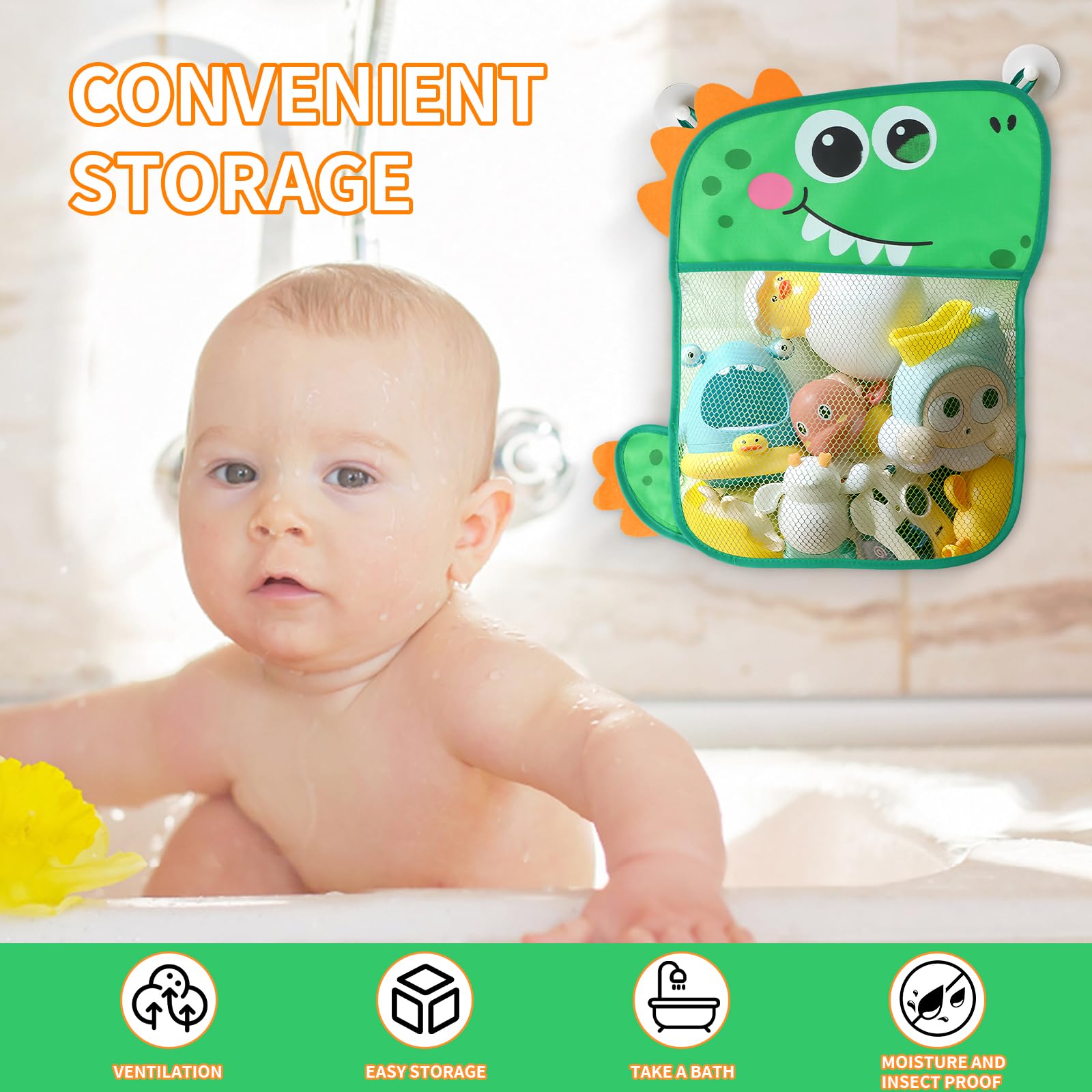 Filet De Rangement Salle De Bain Jouet De Stockage Sac à Jouet Du Bain Avec 2 Crochets Robustes Auto Adhesifs 3245cm 92153799