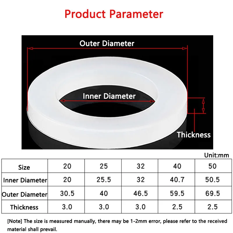 Bonne étanchéité, résistance à la déformation, résistance aux hautes températures, résistance aux basses températures 100% neuf et de haute qualité Dureté modérée, résistance à l'usure, imperméable et isolation Joint plat en Silicone, joint torique, rondelle d'étanchéité pour diamètre intérieur 20 25 32 40mm, raccords de tuyaux, rondelle Anti-fuite haute température 10 pièces Assemblage facile et ajustement sécurisé Silicone blanc de qualité alimentaire, rondelles d'étanchéité, 10 pièces ron ... Épaisseur : 3mm/5mm ... Couleur: Blanc Taille Joint Caoutchouc Pour étanchéité Joints Toriques En Silicone Blanc, Rondelles D'étanchéité, Joints Plats En Caoutchouc De Silicone, Diamètre Extérieur 12mm-30mm épaisseur Joint Plat Caoutchouc Coffret 141 joints plats caoutchouc et fibre techni-power