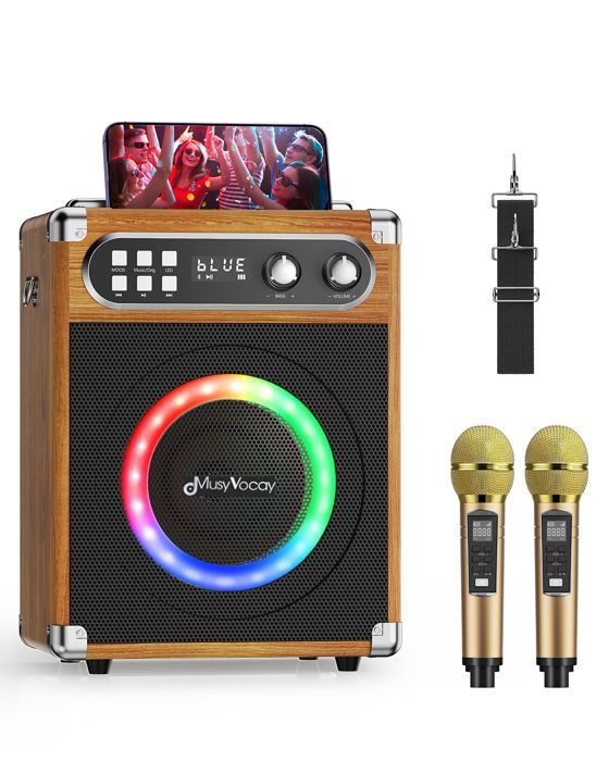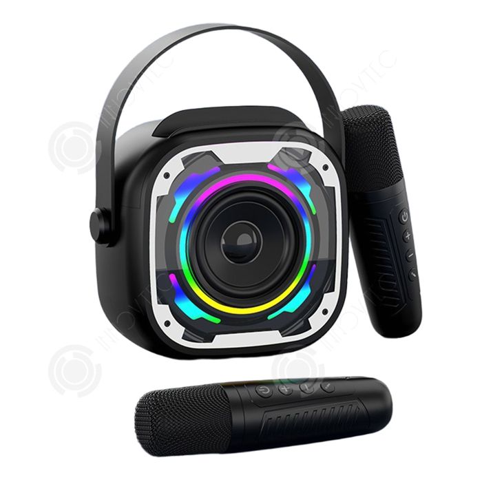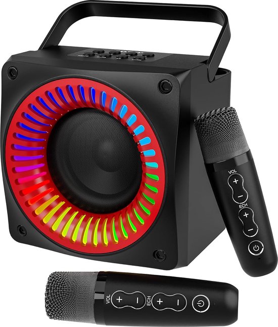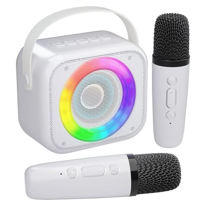 Mini Machine De Karaoké, Adaptée Aux Enfants Comme Aux Adultes Enceinte Bluetooth Portable Avec 2 Microphones Sans Fil 98811208 Karaoke Enfant Moukey Machine à Karaoké, Woofer Portable De 25,4 Cm, Haut-parleur Bluetooth Avec 2 Microphones Sans Fil, Support De Tablette Et Lumières De Fête, Support De Réglage écho/aigus/basse, Support Moukey Enceinte Alternez entre des effets disco éclatants ou une lueur d’ambiance douce selon l’occasion Machine Karaoké Multifonction : Ce système karaoké tout-en-un comprend 2 microphones sans fil, Bluetooth 5., 0 amélioré, des ports USB/TF/AUX et des lumières LED dynamiques. Son Stéréo Premium avec Basses Puissantes : Équipé de haut-parleurs pleine bande de 6,8 pouces et 15W, cet appareil offre un son puissant, clair et sans distortion. Machine Karaoké Multifonction : Ce système karaoké tout-en-un comprend 2 microphones sans fil, Bluetooth 5.0 amélioré, des ports USB/TF/AUX et des lumières LED dynamiques Sa technologie avancée de séparation des basses garantit des graves profonds et des aigus précis—idéal pour chanter, mixer ou simplement écouter vos morceaux préférés , Connexion Bluetooth 5., 0 Stable : Profitez d’une diffusion musicale fluide grâce au Bluetooth 5., 0 pour un appariement rapide et un signal stable. Connectivité polyvalente : Cette enceinte de karaoké Bluetooth prend en charge les cartes TF et les entrées USB pour écouter vos playlists personnelles. Diffusez facilement toute votre musique préférée grâce à ce système Bluetooth Connectez-vous facilement à votre smartphone, tablette ou ordinateur pour accéder à une bibliothèque musicale illimitée sans interruption Utilisable comme enceinte, système de micro ou lecteur musical, il est parfait pour les soirées karaoké en famille, les fêtes ou les animations en extérieur
