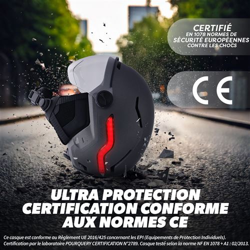 [Visibilité Maximale] Équipé de LED connectées ultra-lumineuses, le casque Vizion assure une visibilité jusqu’à 500 mètres, même de nuit. Ce casque est équipé de l'éclairage intelligent avec détection de freinage automatique. Il est certifié EN 1078 normes de sécurité européennes contre les chocs. Avantages Produits :• Détection de freinage automatique : Le feu stop s'active automatiquement lors du freinage, augmentant votre visibilité et votre sécurité Ultra résistant aux chocs et certifié CE Votre satisfaction est notre priorité, c'est pourquoi en cas de produit défaillant, de questions sur nos produits, vous pouvez contacter notre service client basé en France afin de trouver une bonne solution [Autonomie Longue Durée] Profitez jusqu’à 8 heures d’autonomie en mode ECO grâce à sa batterie rechargeable via USB-C. [Protection Optimale] Testé par un laboratoire français et conforme à la norme EN 1078, ce casque offre une protection fiable. Sa visière intégrée est anti-UV, anti-buée et anti-rayures pour une vision claire par tous les temps Beryl Burner Brake Feu stop vélo USB sur tige de selle - 200 lumens Ce casque est conforme au Règlement UE 2016/425 concernant les EPI (Équipements de Protection Individuels). Casque de vélo avec visière : comment bien choisir Casque Urban Visière Anti-UV Casque Vélo Connecté Gamel – Lumineux, Clignotants, étanche Casque Casr Cette technologie renforce votre visibilité en toutes circonstances, de jour comme de nuit Certifié par ALIENOR CERTIFICATION n°2754., Casque testé selon la norme NF EN 1078 Détection de freinage automatique Le feu stop s'active automatiquement lors du freinage, augmentant votre visibilité et votre sécurité. Clignotant directionnel par télécommande
