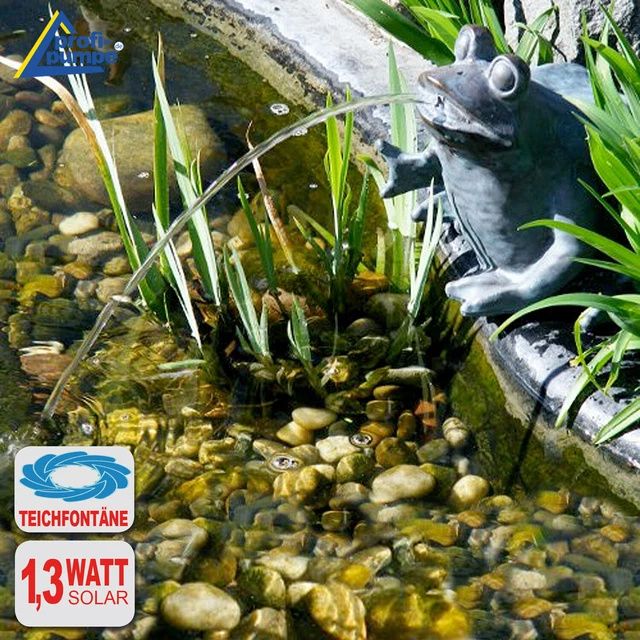 La pompe solaire intégrée est alimentée de manière fiable via le panneau solaire fourni, parfaite pour les zones de jardin ensoleillées et une installation facile. Fabrication de qualité supérieure et aspect élégant. Caractéristiques techniques : Matériau : polyrésine avec aspect cuivre bronze., Panneau solaire : 11 × 11 cm. Pompe de bassin à énergie solaire avec panneau solaire, pas de raccordement électrique nécessaire. Kit pompe solaire vasque ou petit bassin Fountain 140L-1,5W La figurine de bassin est idéale pour les endroits ensoleillés et est particulièrement facile à installer – aucun réservoir d'eau séparé n'est nécessaire. Idéal comme décoration de jardin élégante pour les étangs et les ruisseaux naturels. La figurine détaillée à l'aspect cuivré et bronze élégant devient un point fort décoratif sur le bord de l'étang et s'adapte parfaitement à tout aménagement de jardin naturel. Cela assure une circulation naturelle et favorise l'oxygénation. Figurine décorative pour étang - Gargouille aux détails - Aspect cuivré et bronze élégant - Un véritable accroche-regard sur le bord de l'étang. La gargouille est livrée avec un système de pompe solaire de haute qualité. Le module solaire aux dimensions généreuses permet de faire fonctionner la pompe même en cas de faible ensoleillement Fonctionnement : raccordement direct à l'étang, pas besoin d'un réservoir séparé Fonction de la pompe possible uniquement en plein soleil. Placement flexible grâce au câble de connexion de 3 m. Seehundpaar - Avec Solaire Pompe De Bassin 5 Watt 250 L/Hauteur - Dimensions Env. 200 X 200 X 220 MM - Jeux D'Eau Pour Étang Jardin Statuette Décorative D Le système de pompe intégré est alimenté par un panneau solaire puissant et pompe l'eau directement depuis la bouche ou le bec de la figurine dans l'étang à travers un tuyau de 50 cm de long. Longueur du câble (panneau solaire à la pompe) : 3 m. Puissance de la pompe : 200 l/h, 1,5 W. Jeu d'eau vivifiant avec clapotement doux. Jet D Eau Solaire Pour Bassin Esotec Gargouille CANARD Avec Pompe Solaire Pour Bassin Jeu D'eau Fontaine Jardin Sans électricité Avec une longueur de câble de 3 m entre le panneau solaire et la pompe, le panneau solaire peut être placé de manière flexible là où il reçoit le plus de soleil. Robuste, résistant aux intempéries et prêt à l'emploi. Gargouille solaire pour bassin de jardin - Figurine décorative avec pompe solaire et jeu d'eau Ajoutez de la vie, du mouvement et des clapotements doux à votre bassin de jardin avec cette élégante figurine de bassin avec système solaire intégré. Fonctionne uniquement en plein soleil