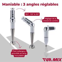 Mixeur plongeant sans fil Bamix rouge Mixeur Professionnel 1800W HB-121207.1 Mixeur Plongeant Sans Fil 700 Ml Verre Doseur Rechargeable Presse Puree Electrique Mixeur plongeant avec bras pivotant – La tête orientable et le bras articulé permettent de mixer dans différents angles (90°, 135°, 180°), avec écran LED et réglage progressif de la vitesse. Mixeur plongeant professionnel – Parfait pour les utilisateurs exigeants. Bras mixeur en acier inoxydable amovible – Résistant et facile à nettoyer. Turmix Mixeur plongeant sans fil CX 422 – Appareil cuisine inox 1800W avec bras amovible, hachoir, fouet et verre doseur – Multifonction rechargeable compact Convient à toutes les préparations, même les ingrédients durs. Mixeur plongeant sans fil Mixeur plongeant professionnel durable. Set complet de blender mixeur – Idéal pour préparer soupes, sauces, purées, smoothies et plus encore.