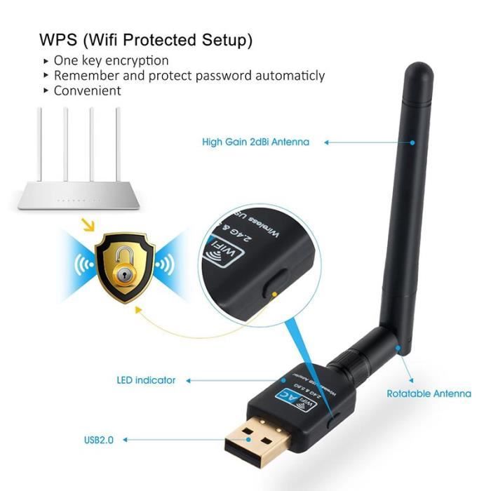 Il fournit un accès WiFi au récepteur MAG, où il n'y a pas de câblage ou difficile à utiliser. Les 10 eilleurs adaptateurs USB WiFi de 2024 – Avis-coparatif.co Description du produit Clé WiFi mignonne et excellente., Chipset : Ralink RT5370., Connectivité : Internet sans fil (connexion au routeur domestique). Normes sans fil: IEEE 802., 11n, IEEE 802., 11g, IEEE 802., 11b. Plusieurs emplacements pour utiliser le dongle WiFi., HomeOfficeCoffee Shop HotelLibrary Longue distance de transmission du dongle WiFi. Si vous l'utilisez à la maison, vous pouvez l'utiliser dans la salle de sport, dans la chambre, dans le salon, en même temps., Produit de qualité. Couleur. Black ; Appareils compatibles. Ordinateur ; Protocole de liaison de données. IEEE 802.11n ; Débit de transfert de données. 150 mégabits par seconde Design pliable avec antenne. TRENDnet - Clé USB Wifi AC1200 double bande à gain élevé - Carte réseau TRENDnet sur Dongle Wifi Antenne Pliable Clé USB WiFi, Wechip Adaptateurs USB Wifi AC600 Dual Bande 5G 433Mbps 2 Clé WiFi Compatible Windows 10 Mac Rotation libre à 90 degrés, agréable Peut être utilisé comme hotspot, et également recevoir et transmettre le WiFi., Parfait Couleur : BlackPrend en charge 802., 11b/g/nMax taux de transfert : 150 Mbits/s., Fréquence : 2,4 GHz. Dimensions : 88 x 58 x 16 mm. Sécurité : WEP, WPA, WPA2, TKIP, AES (64/128 bits) USB 2., 0., Dongle WiFi multifonction pour ordinateur portable ou tablette Il a un design pliable avec une antenne surélevée pour une meilleure réception. Offre une meilleure connectivité que les mini dongles WiFi, surtout s'ils sont situés à l'arrière du récepteur.