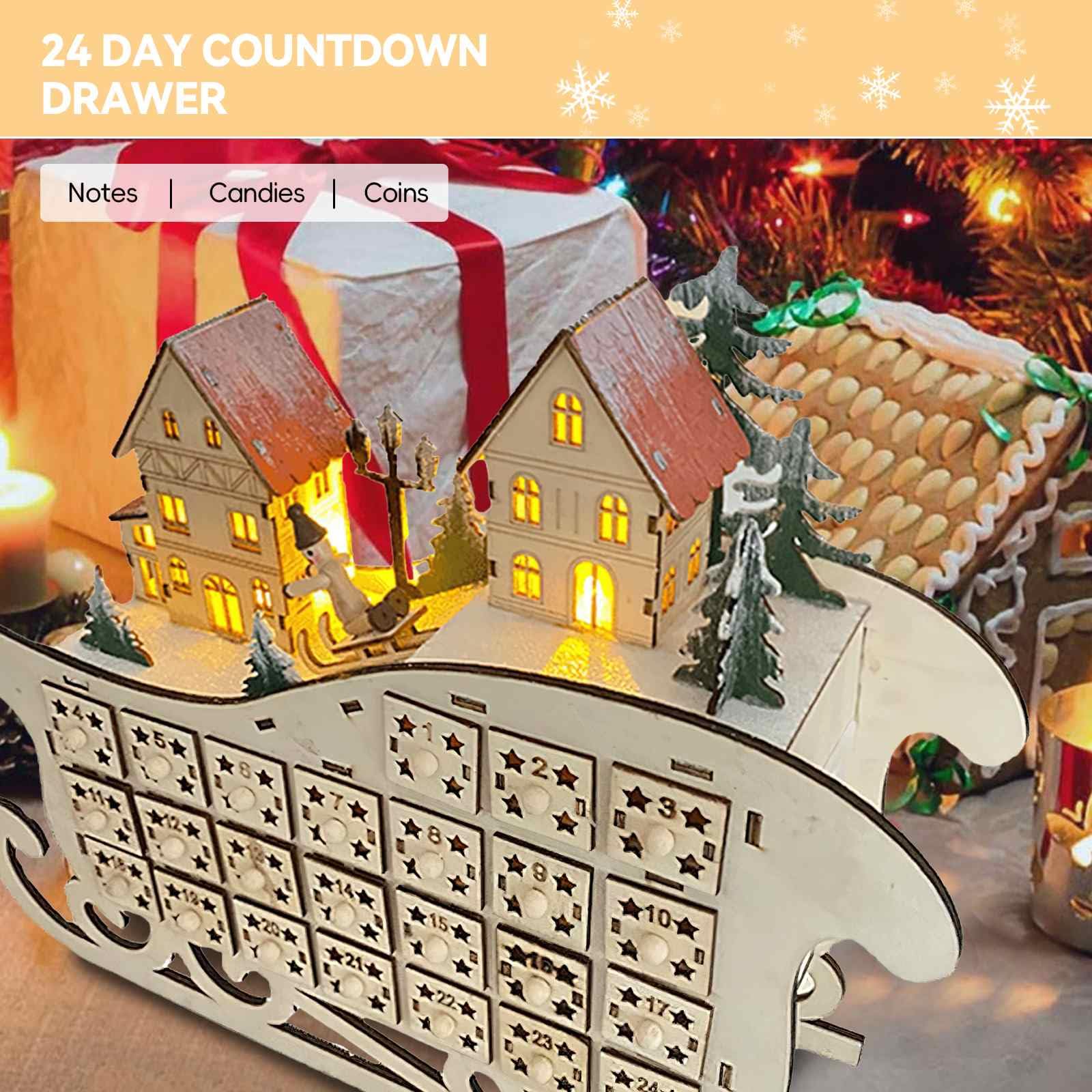 Associé à des lumières LED écoénergétiques qui diffusent une lumière chaleureuse, ce calendrier crée une atmosphère magique et renforce l'esprit des fêtes tout au long du mois de décembre Associé à des lumières LED écoénergétiques qui diffusent une lumière chaleureuse, ce calendrier crée une atmosphère magique et renforce l'esprit des fêtes tout au long du mois de décembre. Calendrier De L'avent En Bois Calendrier De L'Avent En Bois - Avec Lumière - 37cmx29cm - À Remplir Soi- Même Calendrier Vide à Remplir Calendrier De L'Avent En Bois, Calendrier de l'avant de Noël Avec 24 Tiroirs, lumières LED et Musique, Calendrier de l'Avent vide à Remplir Soi-Même, Décorations de Noël 🌟 Cadeau idéal - Idéal comme cadeau de Noël attentionné ou comme décoration d'intérieur, ce calendrier de l'Avent allie fonctionnalité et charme. Son design unique, sa fonction musicale et son magnifique éclairage en font un incontournable pour une expérience de Noël mémorable et enchanteresse. Comptez les jours jusqu'à Noël avec un calendrier de l'Avent en bois : design élégant, durable et idéal pour une ambiance festive à la maison Calendrier de l'avent en bois personnalisé - Arti&Inventive Sa construction robuste lui permet de rester un élément précieux de vos traditions familiales, vous permettant de le remplir de nouvelles surprises année après année pour des souvenirs festifs inoubliables. Parfait pour personnaliser votre compte à rebours et créer des moments de joie et d'anticipation pour toute la famille au quotidien. 🎄 Château enchanteur - Transformez vos fêtes de fin d'année avec ce magnifique calendrier de l'Avent en bois en forme de château, conçu pour ajouter une touche magique à vos décorations de Noël.