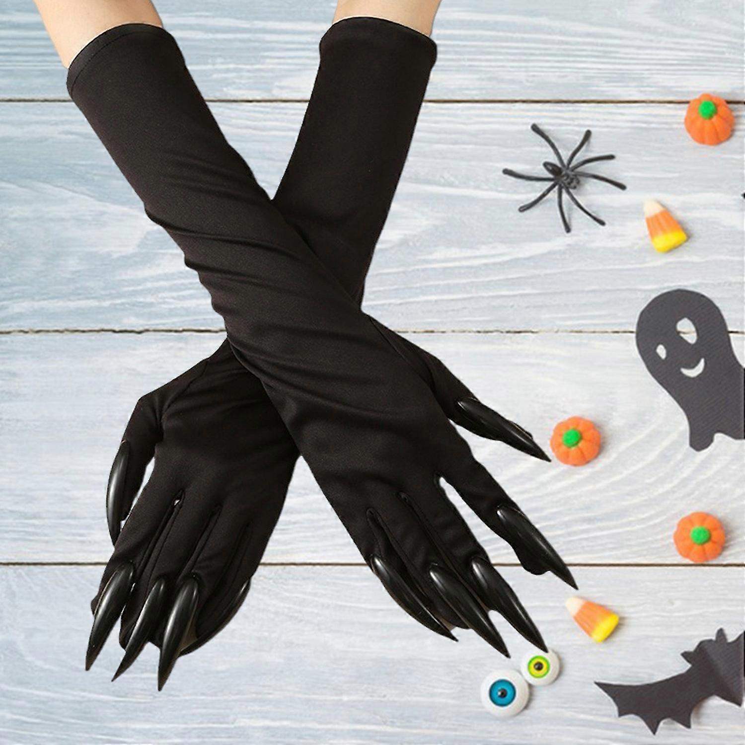 Gants longs de mariée, coude de doigt, nœud noir e... - Grandado Griffe Halloween Gants En Forme De Pattes, Ongles Longs, Accessoires De Cosplay Deguisement Dhalloween 2025~p157059540 Gants Griffes 1 paire de gants à griffes fantômes pour Halloween, pattes de chat, ongles longs, doigts pleins, terrifiants, taille unique, unisexe, pour cosplay, spectacle sur scène Matériau de haute qualité] fabriqué en polyester 100% supérieur. Respirant et doux au toucher, ces gants à longs ongles à bras sont doux pour la peau...