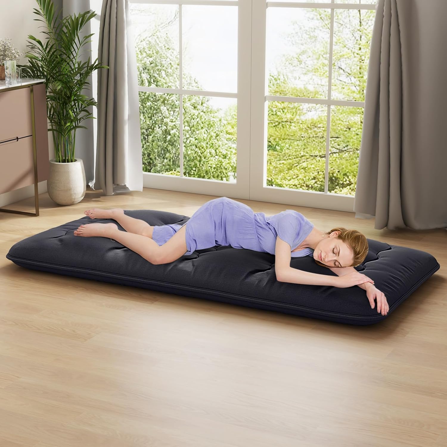 Il faudra donc compter 2 à 3 jours pour qu'il retrouve son épaisseur normale après ouverture du colis. Achetez Matelas futon japonais portable de 8 cm d'épaisseur, pliable et enroulable - 135 x 200 cm - Tapis de sol confortable pour extérieur, camping, voyage - Bleu Notre matelas moelleux est confortable, respirant, agréable à la texture et respectueux de l'environnement. Il offre un soutien solide à votre colonne vertébrale lorsque vous êtes allongé au sol, vous permettant de vous détendre et de décompresser. Trois couches : brossé + matelassé + duvet + matelassé + brossé, épousent les courbes du corps et soulagent la fatigue. Ce matelas souple, pliable et enroulable se place facilement sur un tatami au sol et offre un soutien respirant et ferme. Conception matelassée: Le matelas adopte une forme carrée avec de fines coutures. Les 6 Meilleurs Matelas Futon - (Hiver 2025) Les Avis Profitez d'une vie saine. Futons de massage pas chers (2025 Matelas Sol Matelas De Sol Futon U00e9pais, Matelas Japonais Pliable Enroulable, Matelas Portable De Camping, Matelas De Canapu00e9-lit, Matelas Double En Peluche Simple Double (Color : D, Size : 150 * 190cm Matelas futon: Matelas japonais, futon, literie traditionnelle japonaise. Parfait pour votre salon, votre chambre d'étudiant, votre dortoir ou votre chambre d'amis. Merci de votre compréhension. Stockage : Le matelas doit être plié et compressé lors de l'emballage. À l'arrivée à votre domicile, le produit peut présenter des plis.