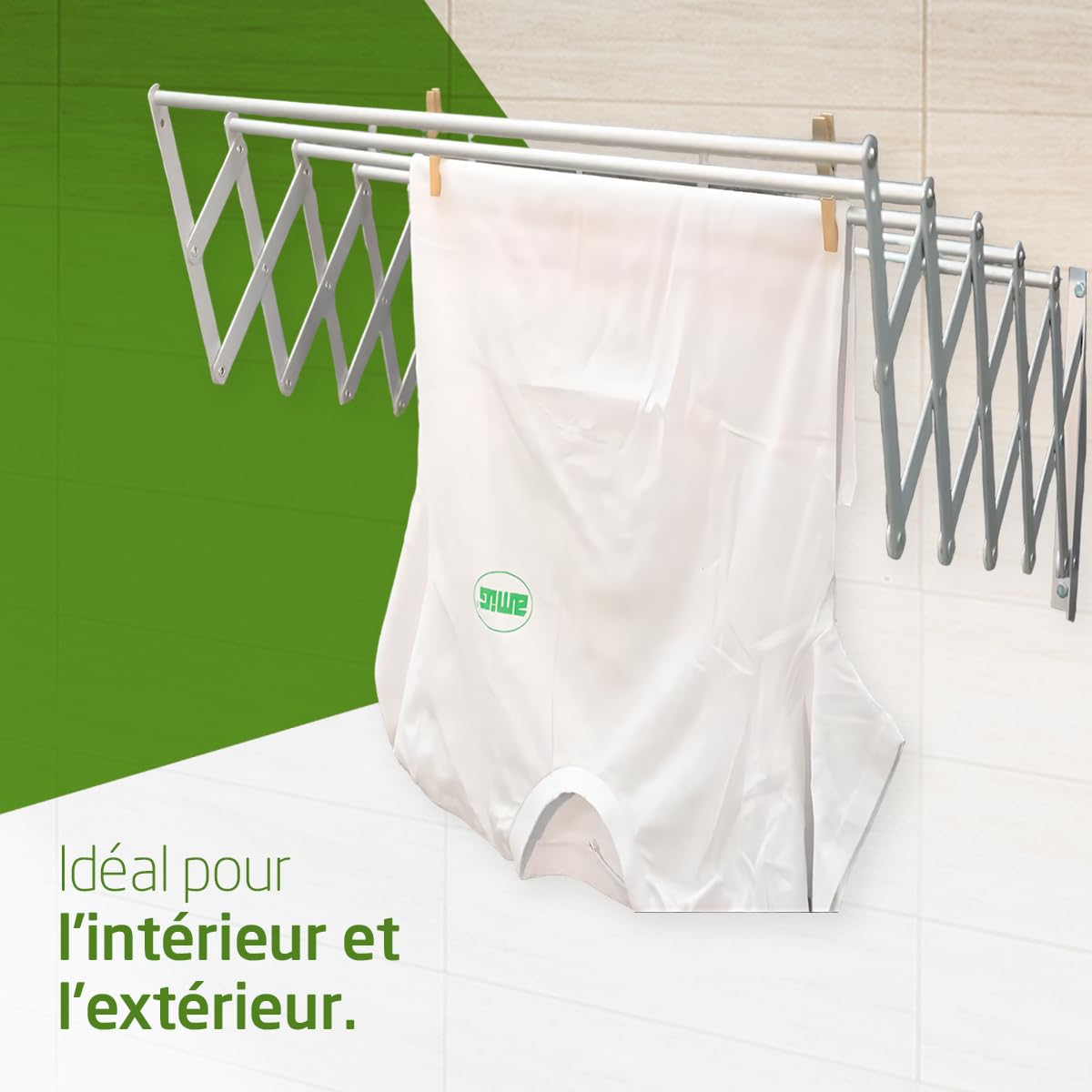 Achetez MSV, Étendoir Mural Extensible Pliante en Métal Pratique et Durable pour Gain de Place, Idéal pour Intérieur et Extérieur, 60 cm, Couleur Métallique, Accessoire de Salle de Bain Gain d'espace : Avec des dimensions de 80 x 45 x 19 cm lorsqu'il est déplié et seulement 45 x 19 cm lorsqu'il est plié cet étendoir mural est parfait pour les petits espaces Il se fixe facilement au mur permettant ainsi de libérer de l'espace au sol tout en offrant une solution de séchage pratique et efficace Etendoir Linge Mural Foxydry Fold Étendoir Mural Pour Balcon Intérieur Ou Extérieur En Aluminium Et Acier (4 X 80 Cm Barres Métal 4m Étendoir à linge Séchez votre linge à l'intérieur sans encombrer votre espace grâce à notre étendoir compact et pratique, avec des barres pliables et une construction légère pour un déplacement facile. Installation facile : L'étendoir mural MSV est conçu pour une installation simple et rapide Il est livré avec tout le nécessaire pour le fixer solidement au mur sans nécessiter d'outils complexes Vous pourrez ainsi profiter de votre nouvel accessoire de séchage en un rien de temps Légèreté et praticité : Avec un poids de seulement 2 kg cet étendoir mural est facile à manipuler et à installer Vous pourrez le plier et le déplier sans effort ce qui le rend très pratique pour un usage quotidien et vous permettra de l'utiliser selon vos besoins de séchage sans contrainte Cet étendoir mural MSV est la solution idéale pour gagner de la place. En métal blanc, il mesure 100 cm déplié (se replie à 45 cm pour le rangement) et offre 5m... Étendoir Mural - Étendoir À Vêtements Rétractable Pour L'Intérieur, Support Mural Pliable Pour Corde à linge Séchez votre linge en plein air avec notre corde à linge robuste et résistante aux intempéries. Capacité de séchage : Cet étendoir mural offre une surface de séchage impressionnante de 4 mètres grâce à ses barres tubulaires de 1,2 cm de diamètre Vous pourrez y suspendre une grande quantité de linge en un seul passage ce qui le rend idéal pour les familles ou pour ceux qui ont beaucoup de vêtements à sécher Séchoir pour sous-vêtements Une gamme de séchoirs spécialement conçus pour les sous-vêtements, offrant une solution pratique et efficace pour sécher vos articles délicats en toute discrétion et en optimisant l'espace disponible.