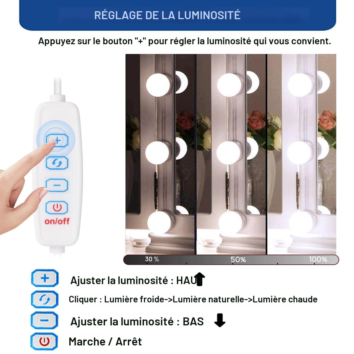 Le système innovant de base à enroulement permet un ajustement parfait de l'espacement entre les ampoules. Yokqexz Bande Lumineuse LED USB À Intensité Variable, 3 Couleurs, Avec Télécommande, For Miroir De Salle Bain, Maquillage, Chambre Coucher, Commode, Câble Extensible 28cm (8 light bulbs Solution d'éclairage de vanité professionnelleTransformez votre quotidien grâce à nos lampes de maquillage USB avancées, dotées de trois températures de couleur et de neuf niveaux de gradation. L'installation par pelage et collage avec du ruban adhésif double face résistant ne nécessite aucun outil, aucun perçage et n'abîme pas les surfaces APPLICATION POLYVALENTE ET CONCEPTION ÉCONOMIQUE: Idéal for de nombreux environnements, notamment les salles de bains, les studios de maquillage professionnels, les dressings et les postes de travail en salon. EFFET LUMINEUX DE QUALITÉ PROFESSIONNELLE: Obtenez un maquillage impeccable grâce à un éclairage uniforme et sans ombres qui révèle avec précision les couleurs et les détails. 3 TEMPÉRATURES DE COULEUR ET 9 NIVEAUX DE VARIATION: Profitez d'un éclairage professionnel avec des options de blanc chaud 3000K, de lumière neutre 4000K et de blanc lumière du jour 6500K. Miroir de Salle de Bain Ovale rétroéclairé par LED, intensité Variable ESPACEMENT RÉGLABLE ET INSTALLATION FACILE : Personnalisez votre éclairage grâce à des câbles série de 28 cm adaptés à différentes tailles et formes de miroirs. Spécifications du produit :Températures de couleur : 3000K (blanc chaud), 4000K (blanc neutre), 6500K (lumière du jour)Niveaux de luminosité : 9 niveaux réglablesSource d'alimentation : alimenté par USB (5 V/2 A)Méthode de contrôle : TélécommandeLongueur du câble : 28 cm entre les ampoules (configuration extensible)Installation : Montage avec ruban adhésif double faceMatériau : puces LED de haute qualité avec revêtement PCÉtapes d'installation :Nettoyez soigneusement la surface de montage avec une lingette imbibée d'alcoolPlanifiez votre aménagement et marquez les positions souhaitéesAjustez l'espacement des ampoules en enroulant les connecteurs de baseDécollez le support adhésif double faceAppuyez fermement contre le miroir ou le mur pendant 30 secondesConnectez l'adaptateur secteur USB à la priseUtilisez la télécommande for sélectionner les paramètres préférésInstructions d'utilisation :Appuyez une fois for allumer/éteindreAppuyez et maintenez enfoncé for faire défiler les températures de couleurAppuyez plusieurs fois for régler les niveaux de luminositéRemarques importantes :Assurez-vous que la surface est propre et sèche avant l'installationNe pas exposer à l'eau ou à l'humiditéÉvitez de plier excessivement les câbles lors de l'installationPour usage intérieur uniquementApplications :Éclairage du miroir de salle de bainCoiffeuses de chambreStudios de maquillage professionnelsÉclairage du vestiairePostes de travail en salonÉclairage photographique TÉLÉCOMMANDE ET ALIMENTATION USB: Contrôlez vos lumières en toute simplicité grâce à la télécommande qui permet de choisir entre les températures de couleur et les niveaux de luminosité. AMPOULE LED,3V 5V Green--Bande lumineuse à puce LED COB 3V 5V, 120MM... Lampe Miroir Bande Lumineuse QISUO Pour Miroir De Maquillage - 30 LED - Intensité éclairage Coiffeuse Chambre Salon Studio Le réglage de la luminosité sur neuf niveaux permet un contrôle précis, d'une douce lumière ambiante à un éclairage direct intense, idéal for un maquillage précis, un rasage ou des soins de la peau, dans n'importe quelle salle de bain ou meuble-lavabo