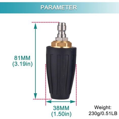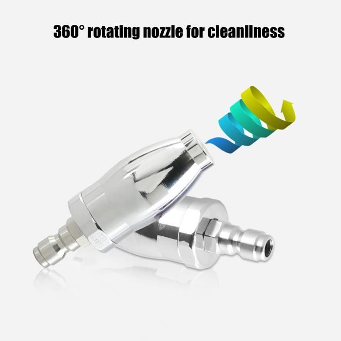 Buse de pulvérisation haute pression - la buse de lavage avec conception rotative offre une efficacité de nettoyage et une zone de pulvérisation plus larges que les buses standard, nettoyeur haute pression Il peut facilement nettoyer la poussière ou enlever la rouille. Karcher Sc3 Accessoires Lave-auto Haute Pression, Buse Rotative De 3600Psi, Turbo, 1/4 Pouces, Conception De Connexion Rapide, Pratique à Réaliser Nettoyeur Haute Pression Sur Batterie Excellent pour enlever la rouille, nettoyer les réservoirs en métal ou en plastique, nettoyer les bateaux, nettoyer les sols de garage sales, décaper la peinture sur les surfaces extérieures en bois et enlever la boue et l'argile des autoroutes et des équipements de construction. Installation rapide performance turbo : Buse a connexion instantanee augmentant pression et zone de nettoyage, pret a l'emploi immediat apres montage. Nettoyage haute pression: Turbo-buse rotative multiplie la puissance d'eau pour éliminer rouille et poussière avec efficacité optimale. Elle tourne à grande vitesse pour augmenter à la fois l'intensité et la zone de nettoyage du jet. Multiplie la pression ordinaire en une puissance de nettoyage puissante à l'aide d'un jet d'eau rotatif ARAMOX pulvérisateur pour nettoyeur haute pression Buse Turbo pour Multiplie la pression normale avec un jet d'eau rotatif pour une forte puissance de lavage. Spécifications du nettoyeur haute pression et liste de colisage Cette buse turbo réduit le temps de nettoyage en faisant pivoter un jet de pulvérisation à 0° et un jet grand angle, offrant une efficacité de nettoyage de 200 % par rapport aux buses à jet plat traditionnelles.