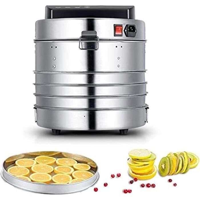 Séchage Uniforme à 360°:Grâce à un moteur de 400 W et une circulation d’air horizontale à 360°, ce deshydrateur alimentaire inox assure une chaleur constante sur tous les plateaux. Parfait pour fruits, légumes, viande ou friandises maison Les plateaux en acier inoxydable sans BPA sont ajustables, compatibles lave-vaisselle, et parfaits pour les fruits, les herbes, la viande séchée, etc. Silencieux, compact et facile à utiliser - idéal pour des en-cas sains à la maison Séchage Uniforme à 360°:Grâce à un moteur de 400 W et une circulation d’air horizontale à 360°, ce deshydrateur alimentaire inox assure une chaleur constante sur tous les plateaux. Pas besoin de les retourner. Préserve jusqu’à 97 % des nutriments Préserve jusqu’à 97 % des nutriments Déshydrateur Déshydrateur Alimentaire, Cycle De Chauffage À 360 Ce déshydrateur pour fruits et légumes dispose d’un rangement intégré pour le cordon et d’un format compact idéal pour votre cuisine Les pieds antidérapants assurent une bonne stabilité et l’arrêt automatique garantit une utilisation sûre, idéale comme déshydrateur pour viande ou champignons Déshydrateur 5 Plateaux Température Réglable Déshydrateur Alimentaire 5 Plateaux De Comptoir En Acier Inoxydable Numérique Déshydrateur Rotissoire Verticale Contrôle Précis du Séchage:Réglez la température de 35 à 70 °C et la minuterie de 1 à 48 h. 5 Plateaux En Acier Inoxydable:Ce déshydrateur alimentaire est équipé de 5 plateaux en acier inoxydable de qualité alimentaire, sans BPA, légers et durables. Ils passent au lave-vaisselle pour un nettoyage sans effort.
