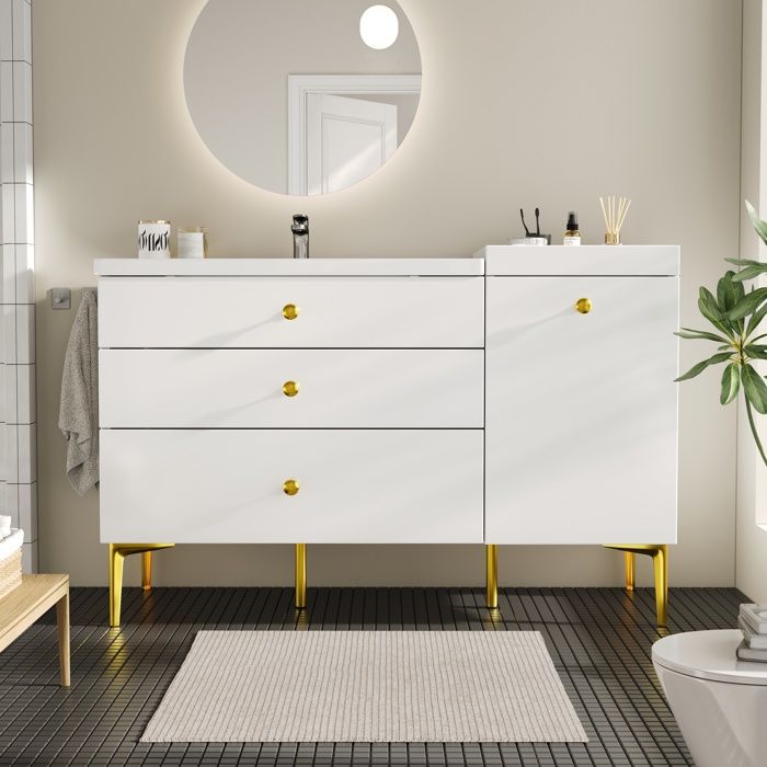 Meuble Sous-vasque 76x46x87 Cm Avec Lavabo Céramique Et Rangements Meuble Salle De Bain Rangement Tiroirs Meuble De Salle De Bain 76x46x87cm Avec Vasque, Meuble Bas Peinture Hydrofuge Glissieres Silencieuses Cadre De Porte 97177117 Meuble Bas Blanc 76x46x87cm Idéal pour les salles de bain humides, il empêche la vapeur d'eau d'endommager le matériau du meuble. Couleur : BlancMatériau : MDFDimensions : 76 x 46 x 87 cmForme : RectangulaireStyle : ModerneTraitement de surface : PeintureType de montage : AutonomeNombre de vasques : SimpleType de vasque : EncastrableEmplacement de la vasque : CentralTaille du trou de robinetterie : 3,5 cm (robinetterie non incluse)Nombre de portes : 1Nombre de tiroirs : 4Quincaillerie incluse : OuiAssemblage : Assemblage requisQuantité par paquet : 3 Les portes et tiroirs en relief sont dotés de poignées argentées, soulignant l'élégance et la modernité. Fabriqué en panneaux de fibres à densité moyenne (MDF) et traité avec un revêtement hydrofuge, il est durable et résistant à l'humidité. Le meuble en céramique intégré est lisse et facile à nettoyer, et dispose d'une protection anti-débordement pour plus de sécurité et de commodité Il s'adapte à tous les styles de décoration de salle de bain et rehausse l'esthétique générale de la pièce. Bmr Meuble Lavabo Salle De Bain at Ryder Sturdee blog Grand espace de rangement : Équipé de trois tiroirs silencieux à fermeture humide, d'une étagère de porte et d'un tiroir abattant, il offre un espace de rangement spacieux et bien organisé, rendant le rangement de la salle de bain plus pratique et ordonné. Design simple et élégant : Le design blanc est à la fois simple et élégant.