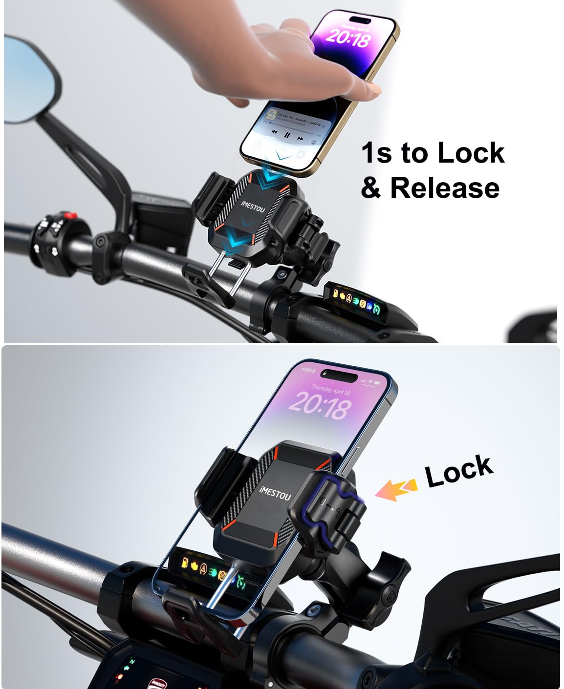 To release your phone, simply push the top of the mount and the bracket will automatically release. Il est également doté de quatre amortisseurs de chocs et d'une pince à quatre griffes avec un panneau en silicone souple pour éviter les rayures sur votre téléphone. Compatible avec une large gamme de téléphones - Le support à boule pour moto est compatible avec les téléphones de 4,7 à 7,2 pouces, avec une largeur réglable et un tournevis hexagonal permettant d'ajuster la largeur du bras pour l'adapter à différentes tailles de téléphone. Compatibilité Polyvalente - Avec une tête sphérique de 1, le support de téléphone de vélo convient aux supports de téléphone RAM de taille B ou à d'autres supports ou accessoires adaptateurs de tête sphérique de 1. L'un des principaux avantages du support pour téléphone de moto iMESTOU est sa conception anti-vibration, qui garantit que votre téléphone reste stable et ne tremble pas, même sur des terrains accidentés. Avec une tête sphérique, il est adapté pour les supports de téléphone RAM B ou d'autres supports d'adaptateur à 1 rotule ou accessoires. L'un des avantages importants du support de téléphone iMESTOU pour moto est son design anti-vibration, qui garantit que votre téléphone reste stable et ne bouge pas même sur des terrains accidentés Support téléphone moto + Amortisseur Vibration - Équipement moto Absorbeurs de chocs et panneau en silicone souple - Le support de téléphone à 1 boule est équipé de quatre amortisseurs de chocs et d'une pince à quatre griffes avec un panneau en silicone souple pour éviter les rayures. Il est durable, ce qui en fait un choix fiable pour les passionnés de moto. Il s'agit donc d'une option polyvalente qui peut être utilisée avec une grande variété de smartphones. Il s'agit donc d'un accessoire indispensable pour tous les passionnés de moto qui souhaitent rester connectés lorsqu'ils sont sur la route. Support Smartphone Moto RAM Compatible IMESTOU Titulaire De Téléphone De Moto Anti-vol Imperméable - Montage De Téléphone à Vélos Avec Support Téléphone Moto Anti-vibration Large compatibilité : ajustez facilement la largeur et la longueur pour s'adapter à la plupart des téléphones portables de 13,2 à 18,3 cm, allant de 66 à 88 mm de largeur et ≤ 15 mm d'épaisseur, avec une tête sphérique rotative de 2,5 cm pour un positionnement polyvalent de l'écran En conclusion, si vous êtes un passionné de moto qui attache de l'importance à la sécurité et à la commodité, le support anti-vibration pour téléphone de moto iMESTOU est un excellent investissement ! Le support comporte un panneau en alliage d'aluminium 6061-T6, ce qui lui confère non seulement une apparence élégante, mais le rend également suffisamment robuste pour résister à tous les terrains accidentés. Conception Anti-vibration - Le support pour téléphone de moto iMESTOU est spécialement conçu avec une conception anti-vibration qui garantit que votre téléphone reste stable et sécurisé pendant la conduite. With its back safety locking knob, you can be sure that your phone will stay securely in place even at high speeds. Avec une tête sphérique, il convient aux supports de téléphone RAM de taille B ou à d'autres supports ou accessoires adaptateurs à tête sphérique. Matériau de haute qualité - Le panneau du support est fabriqué en alliage d'aluminium 6061-T6, ce qui lui confère une structure robuste et un aspect haut de gamme.