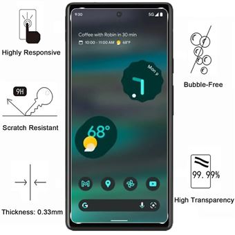【Service Après-vente】MAYtobe vous offre une garantie de service client à vie et un service de remboursement inconditionnel de 30 jours, quelle que soit la raison. 【Compatibilité】Verre trempé spécialement conçu pour votre Google Pixel 6A 5G. 【Installation Facile】Accessoires complets, le verre sera automatiquement adsorbé et l'écran tactile n'affectera pas la sensibilité après l'installation. Installation Sans Bulles Sensibilité Conservée Coque Gel Transparente Pour 6A Et 2 Protections écran Google Pixel RKINC Verre Trempé [Lot de 3] pour Google Pixel 6A, Film Protection écran, Dureté 9H 0,33 mm HD Glass [Garantie à vie] [sans Bulles d'air] [Résistant aux rayures Protection d'écran en verre trempé Premium Ultra fine (0,26 mm) Ultra résistante aux chocs Traitement anti-rayures (9H) Angles arrondis (Radian 2,5D) Réduction des traces de doigts (traitement oléophobique) Taux de pénétration lumière ≥95% Installation facile (sans bulle d'air) Excellente réactivité tactile Contact agréable Coque Google Pixel 6a, avec 2pcs Verre Trempé Housse Protection Écran