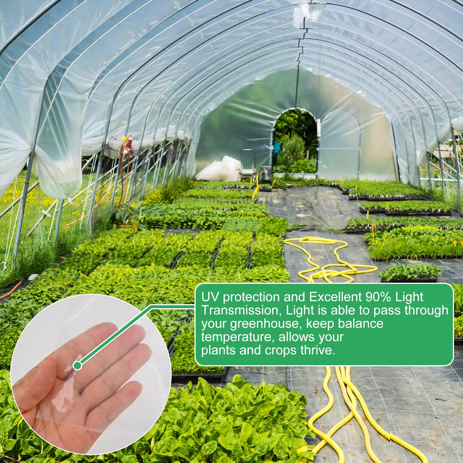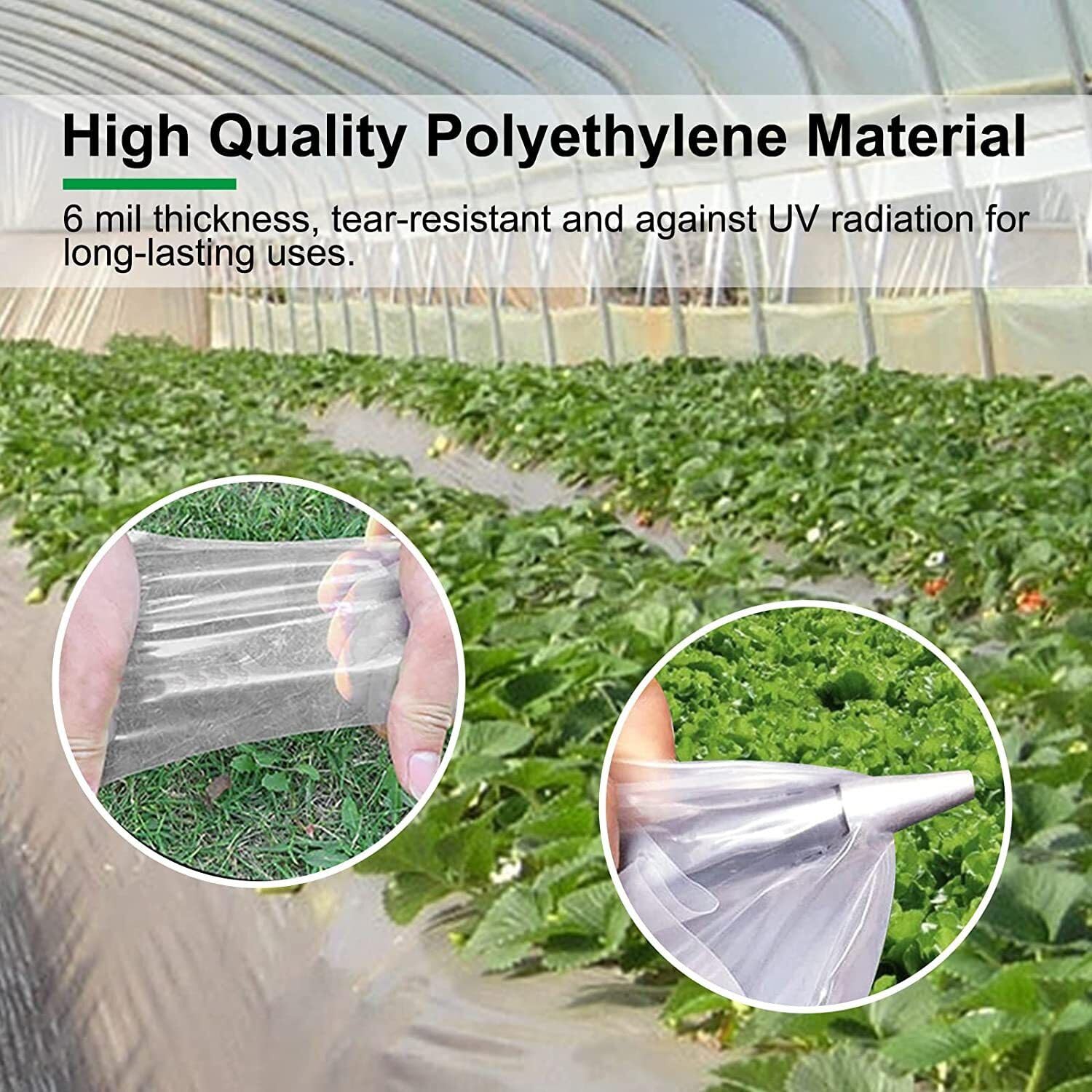 Domaine d'utilisation : jardin, terre agricole, base de plantation, etc. Le film de jardin extra épais et indéchirable n'est pas seulement facile à déchirer, mais aussi résistant au vieillissement. Le film de serre a été spécialement traité pour le rendre résistant à l'eau et aux UV. Même en hiver froid, le film de serre transparent peut créer un environnement de croissance agréable pour les plantes. Couleur transparente : le film de serre est fabriqué en matériau transparent qui peut laisser passer complètement la lumière du soleil et la lumière naturelle et fournir aux plantes suffisamment d'énergie photosynthétique Le design transparent du film de jardin extra épais et indéchirable permet à vos plantes de profiter pleinement des nutriments du soleil et de prospérer. Film Serre 6x2m Transparent SWTYExt Film De Serre En Polyéthylène - 2 X 6 M - Transparent - Extra épais - Bâche De Serre - Résistant à La Déchirure - Pour Tunnels En Film Plastique Film Serre Résistant UV Matériau de qualité supérieure : le film de serre est fabriqué en film polyéthylène de qualité supérieure, qui présente d'excellentes propriétés anti-ultraviolets, et le film de serre extra épais est non seulement robuste et durable, mais aussi résistant à la déchirure et au vieillissement. Le film de serre de 2 x 6 m offre un espace de croissance spacieux pour vos plantes. Caractéristiques : Nom du produit : film de serre transparent Dimensions : 2 x 6 m Matériau : polyéthylène. Maintien de la température : le film tunnel peut non seulement maintenir la température du sol pendant la journée, mais aussi empêcher la température de baisser fortement la nuit. Film thermique classique à fort taux de lumière directe pour une production précoce. Largeurs: 2 m, 2,50m, 3 m, 3,50m, 6,50m, 7,25m, 8m, 9,20m, 10m, 11,20m, 12,50m... Fonctionnalités : Film de serre de 2 x 6 m, offrant beaucoup d'espace pour la croissance de vos plantes. Caractéristiques : imperméable, résistant aux UV, ultra épais et durable Utilisation : conservation de la chaleur pour favoriser la croissance, environnement de croissance des plantes Couleur : transparent. Le film en polyéthylène est durable et offre une protection durable pour vos plantes. La couleur du film est transparente, ce qui permet à la lumière du soleil et à la lumière naturelle de passer complètement et de fournir aux plantes l'énergie nécessaire à la photosynthèse. Film en polyéthylène transparent pour serre, technologie 6S, anti-poussière et anti-gouttes, facile à installer, largement utilisé, transmission de la lumière supérieure à 90 % (2 x 2 m Film à Effet de Serre 6 x 8,5 m Film en Polyéthylène pour Serre 0 Que vous soyez un passionné de plantes ou un propriétaire de terres agricoles, notre film de jardin indéchirable en polyéthylène sera votre main droite.