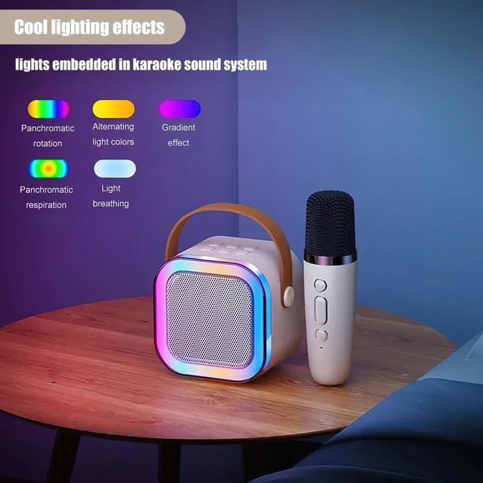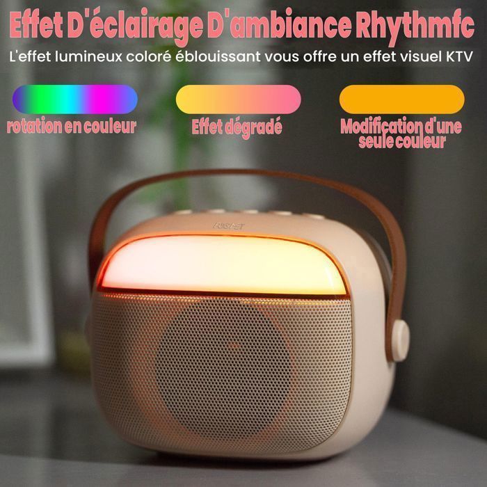 Parfait pour les sorties en famille, les soirées karaoké, les fêtes à la maison, l'église, la salle de classe, l'espace de travail, la salle de jeux et tout lieu de fête. Machine à karaoké pour enfants avec 2 microphones - Mini modèle pour Le petit haut-parleur prend en charge les connexions Bluetooth, carte TF, USB et AUX. Voix magique et lumières colorées 【2 microphones sans fil changeant de voix】La machine de karaoké pour enfants avec 2 microphones rechargeables, durera 5 à 6 heures après une charge complète. 【Modes d'éclairage pour les fêtes amusantes】La machine de karaoké pour enfants est équipée de lumières disco colorées qui ont un bouton indépendant pour allumer et éteindre. Fonctionnement plus facile et poids léger adapté pour les enfants. Avec un pilote audio avancé et un processeur de signal numérique, il rend la qualité du son plus claire, plus stéréo et équilibrée. Lorsque vos enfants ouvrent le cadeau, il doit y avoir un grand sourire sur leur visage et adorer les jouets cadeaux uniques. 【Système Bluetooth multifonctionnel】 La mini machine de karaoké est construite avec la dernière puce Bluetooth 5., 0 pour le streaming sans fil, ce qui garantit un couplage instantané et offre une transmission plus stable et une plus longue distance jusqu'à 9,8 m (sans obstacles). Dynasonic Karaoke Enfant Mini Machine De Karaoké Pour Enfants Et Adultes - Haut-parleur Bluetooth Portable Avec 2 Microphones Sans Fil Et Lumières Colorées, Cadeau Idéal Pour Filles, Garçons, Anniversaire, Fête De Famille Après avoir allumé les micros et le haut-parleur, ils se connecteront automatiquement. Avis clients · Facilité d'utilisation (4,2/5) · Rapport qualité / prix (4,6/5) · Performance (4,2/5) · Simplicité d'entretien (4,5/5 Offre à vous et à votre famille une expérience de karaoké amusante et immersive lorsque vous chantez des chansons. Le design élégant et la belle boîte d'emballage en font un cadeau d'anniversaire parfait pour la famille et les amis. Parfait pour les petites fêtes, les écoles, les églises et les gymnases. Le microphone adopte la technologie de perçage mural sans fil UHF, réduction intelligente du bruit. 【Cadeau surprise pour les enfants】Le design mignon et l'utilisation simple en font le KTV portable idéal pour les filles, les garçons et les adolescents. Les 6 modes d'éclairage intégrés créent une expérience de karaoké immersive et dynamique. Changeur de voix parfait pour le karaoké en voiture, les fêtes à la maison, les salles de classe, les discours, d'autres occasions. Cette machine de karaoké portable prend également en charge les cartes Micro TF, Flash USB et la connectivité AUX-in, ce qui la rend compatible avec une gamme d'appareils tels que les téléphones mobiles, les tablettes et les PC.