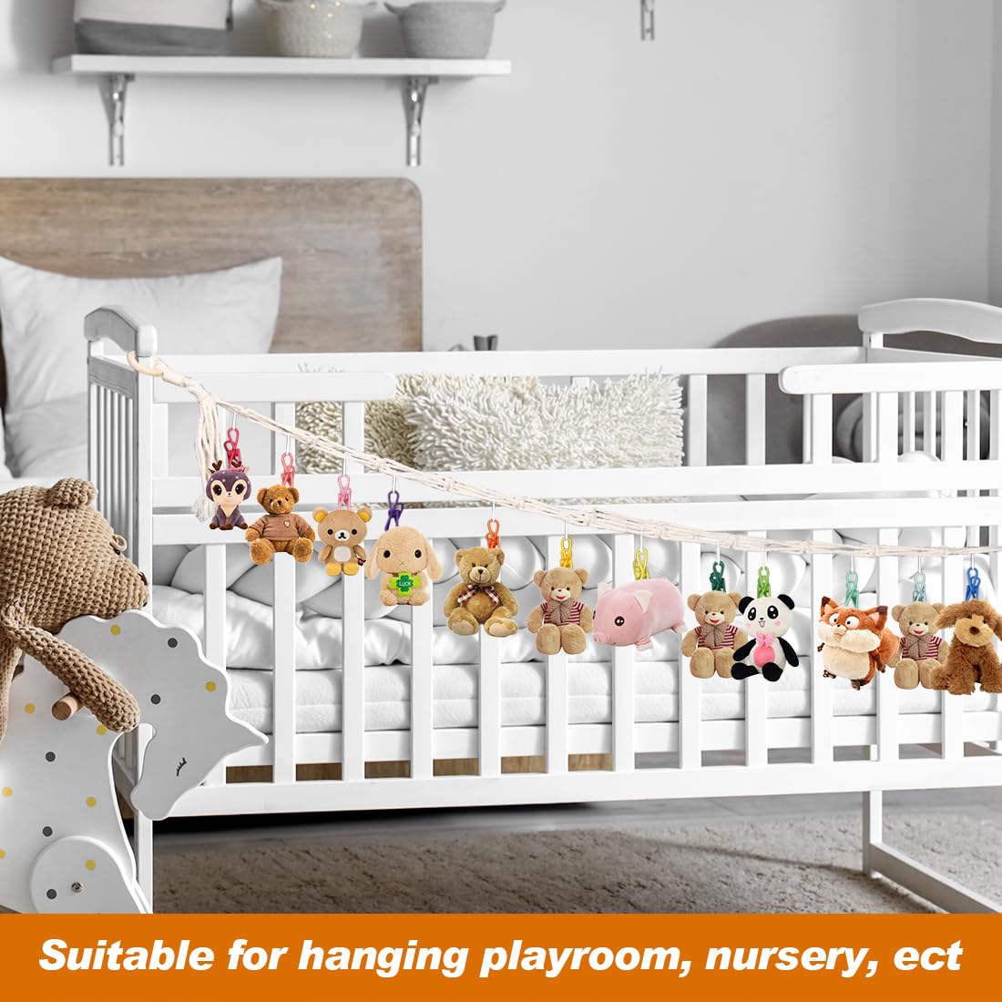 1 chaîne de rangement en coton avec 20 clips métalliques pour Corde Coton 2 M Ours En Peluche Hamac De Rangement Pour Animaux En Peluche, Support De Jouets En Bois à 2 Couches, Organisateur De Jouets Suspendus Pour Jeu De Pépinière Acheter à Prix Bas - Livraison Gratuite, Avis Réels Organisateur Jouets Suspendu Contenu de l'emballage : vous recevrez 1 chaîne de rangement pour animaux en peluche et 20 clips métalliques, quantité suffisante, avec un design à double suspension, peut être accroché horizontalement ou verticalement, peut répondre à tous vos besoins de suspension et de rangement de petits objets. Caractéristiques : Nom du produit : 1 organisateur de chaîne de jouets Couleur du produit : blanc. Contenu : 1 chaîne de rangement à suspendre. Contenu de l'emballage : vous recevrez 2 supports de jouets en peluche suspendus avec 20 clips métalliques, une quantité suffisante pour répondre à vos besoins de suspension Grande capacité : la longueur de la chaîne de rangement pour jouets est d'environ 2 m de long, la taille du clip est d'environ 3,4 x 1 x 1,2 cm, peut contenir jusqu'à 20 jouets en peluche, gardez vos jouets organisés et bien rangés. Le hamac de rangement pour jouets de taille Jumbo 188 x 145 x 145 cm stocke 80 pièces de peluches dans les tailles 15-20 cm ou 40 pièces dans les tailles 25-30... Large gamme d'applications : ce rangement de jouets en coton peut utiliser pleinement l'espace dans le coin pour vous aider à organiser vos animaux en peluche tout en vous économisant beaucoup d'espace, vous pouvez également l'utiliser pour ranger des chaussettes, afficher des cartes de vœux de vacances, des photos, etc. Dimensions du colis : 24 x 16 x 1,9 cm.