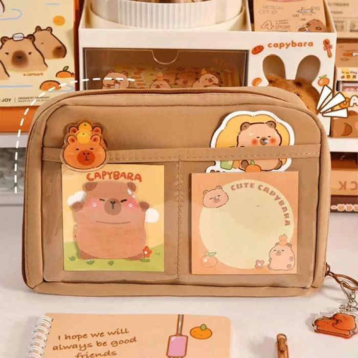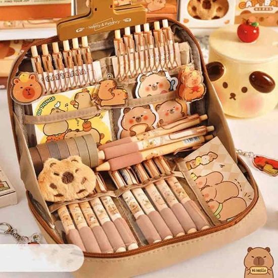 La large ouverture permet un accès facile à l'essentiel, réduit le chaos et fait gagner du temps, rendant l'utilisation quotidienne plus pratique. Il offre une solution robuste et fiable pour le rangement de vos stylos et autres ustensiles d'écriture. Superbe cadeau : impressionnez votre bien-aimé avec cet adorable ensemble de papeterie Capybara, avec de superbes designs qui rendent l'écriture et la prise de notes plus amusantes Calling all capybara lovers! This adorable capybara-themed stationery set is absolutely packed with cute goodies that any student would adore Rangement Polyvalent: Gardez vos articles de papeterie indispensables organisés et sécurisés avec notre ensemble de papeterie Capybara. Capybara - Trousse à crayons Capybara mignonne avec papeterie, ensemble Que l'on suive des cours, que l'on dessine ou que l'on travaille, cet étui est parfait pour un étudiant, un artiste ou un professionnel, pour répondre à tous vos besoins de stockage. Avec ses jolis motifs capybara, il n'est pas seulement un accroche-regard, mais aussi un excellent cadeau. Capybara Papeterie Papeterie Organisée Trousse Capybara Kawaii - 12 Compartiments - Fournitures De Bureau Incluses - Style Mignon Et Organisé Fournitures Bureau Kit Scolaire étudiant Cadeau Amusant Conception à Large Ouverture: Grande trousse à crayons capybara avec compartiments est conçu avec une large ouverture, construit dans une fente spéciale pour organiser vos stylos, notes autocollantes, gommes et bien plus encore. Il répond à vos besoins, reflète votre personnalité et votre goût, tout en offrant un espace de rangement idéal pour vos fournitures scolaires. Matériaux de Haute Qualité: Cet trousse à crayons capybara ensemble est fabriqué avec des matériaux de haute qualité, durable, sensation solide, excellente résistance à l'usure, garantissant qu'elle reste en bon état après une utilisation à long terme.