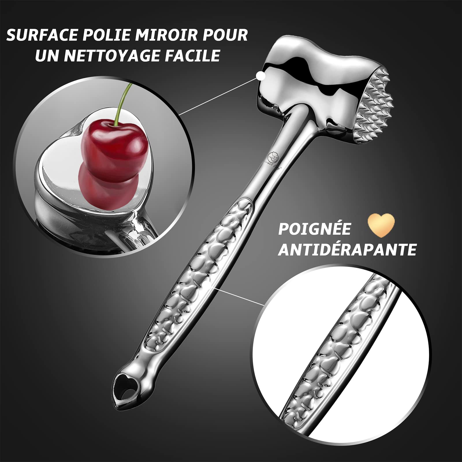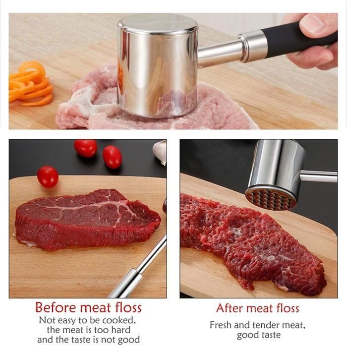 attendrisseur de viande marteau Le marteau attendrisseur de viande en métal vous offre une prise en main confortable et pratique, facile et sûre à utiliser. L'attendrisseur de viande a également une boucle pour que vous puissiez bien l'accrocher 100 % satisfait. Passe au lave-vaisselle : ce marteau attendrisseur de viande passe au lave-vaisselle, il suffit de le rincer à l'eau ou de le mettre au lave-vaisselle lorsque vous avez terminé. attendrisseur de viande marteau maillet Aplatissez efficacement vos morceaux de viande en quelques secondes, et utilisez le côté texturé pour assaisonner et attendrir, laissez la saveur entrer vraiment dans chaque bouchée. Poignée en silicone antidérapante : ce marteau attendrisseur de viande a une poignée ergonomique en silicone, confortable à prendre en main et antidérapant, sûr à utiliser. Marteau à viande en acier : un côté est plat, adapté pour l'expansion de la viande, ce qui rend la viande plus fine, attendrisseur de viande en acier inoxydable Nous vous promettons chaque attendrisseur de viande de qualité et un service client amical. Attendrisseur Viande Marteau à Viande Double Face - Attendrisseur Attendrisseur Viande Agiferg Marteau Attendrisseur à Viande Double Face En Acier Inoxydable Pour Steak, Maillet, Outil De Barbecue Poignée Silicone Antidérapante Cuisine Double face : un côté du marteau attendrisseur de viande est plat et l'autre est à pointes. Dimensions : 28 x 5,3 x 5 cm., Poids : 430 g. Contenu du paquet : 1 attendrisseur de viande. Robuste : ce marteau attendrisseur de viande est fabriqué en acier inoxydable de qualité alimentaire, résistant à la corrosion, solide et durable. La tête est parfaitement pondérée et équilibrée pour faciliter le martelage et l'attendrissage.