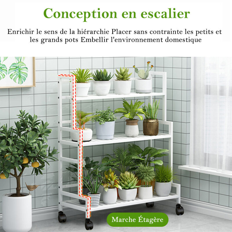 Étagère à plante 3 niveaux support 80 x 85 x 175,5 cm en vente chez Maisons du Monde. Découvrez toutes les informations sur le produit et nos offres associées Matériau antirouille et résistant à la corrosion, parfait pour une utilisation en intérieur ou en extérieur. étagère Pour Plantes Support Pour Plantes à 3 Niveaux, Support Pour Plantes D'angle Support Plantes Interieur Ce support de plante est la meilleure décoration pour votre salon, balcon ou jardin., Matériau : métal. La longueur des supports de plantes peut contenir au moins 3 plantes pour chaque niveau. Dimensions totales : 71 x 24,5 x 83 cm. Et cette étagère debout est faite d'un cadre en fer revêtu de poudre pour une longue durée de vie et une excellente capacité de charge. Avec ses charmants détails floraux, cette étagère à chaussures est non seulement performante, mais offre également un excellent plaisir visuel Etagère Droite, 3 Niveaux, Échelle Décorations, Plantes Et Livres, En Support robuste pour plantes : fabriquée en métal épais de haute qualité, l'étagère en métal a une capacité de charge plus forte jusqu'à 68 kg. Le support de plante classique apportera une excellente performance dans votre maison ou votre jardin. 【Service après-vente parfait】Si pour une raison quelconque vous n'êtes pas entièrement satisfait de votre achat, ou si vous rencontrez des problèmes lors de l'utilisation, vous pouvez cliquer sur le bouton « Contacter le vendeur » pour nous envoyer un e-mail, et nous vous fournirons une solution satisfaisante dans les 12 heures.