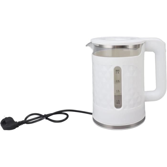 Sencor Bouilloire Électrique en Verre SWK 1812BL - Capacité de 1,8 Bouilloire Arrêt Automatique Sécurité Bouilloire Électrique Domestique Grande Capacité 1500W Haute Puissance Chauffage Rapide Acier Inoxydable base rotative à 360 degrés, invite de niveau d'eau le plus élevé, voyant lumineux. Avec un interrupteur automatique et des fonctions de sécurité anti-ébullition à sec, arrêt automatique lorsque l'eau bout ou lorsque la bouilloire est soulevée, et interrupteur thermique. Les bouilloires sont équipées d'un bec verseur à poignée froide et anti-goutte qui facilite le versement. Bouilloire Electrique, 2000W Bouilloire de Chauffage Rapide Grande Bouilloire Sans fil, Niveau Eau Visible, Arrêt Automatique (Jaune, 1.2L) Bouilloire électrique en acier inoxydable de grande Particulièrement adaptées à un usage domestique, par exemple : cuisine, magasin, bureau, hôtel, etc. Bouilloire Sans Fil TECHWOOD TB-1771 1.7L - Blanc Caractéristiques du produit : Matériau : acier inoxydable 304 Capacité : 1,2 L/2 L/3 L/5 L Dimensions du produit : 28 * 23 * 22 cm Poids net du produit : 40,92 oz / 1,55 kg Tension nominale : 220-230 V ~ 50 Hz Puissance nominale : 1500 W (1,2 L/2 L), 2000 W (3 L/5 L) Fonction spéciale : Acier inoxydable, sifflet électrique, base pivotante à 360°, arrêt automatique à ébullition avec protection contre la cuisson à sec, sans BPA La poignée isolante de sécurité est conçue pour protéger la poignée résistante à la chaleur contre le froid afin d'éviter les brûlures pendant le fonctionnement.