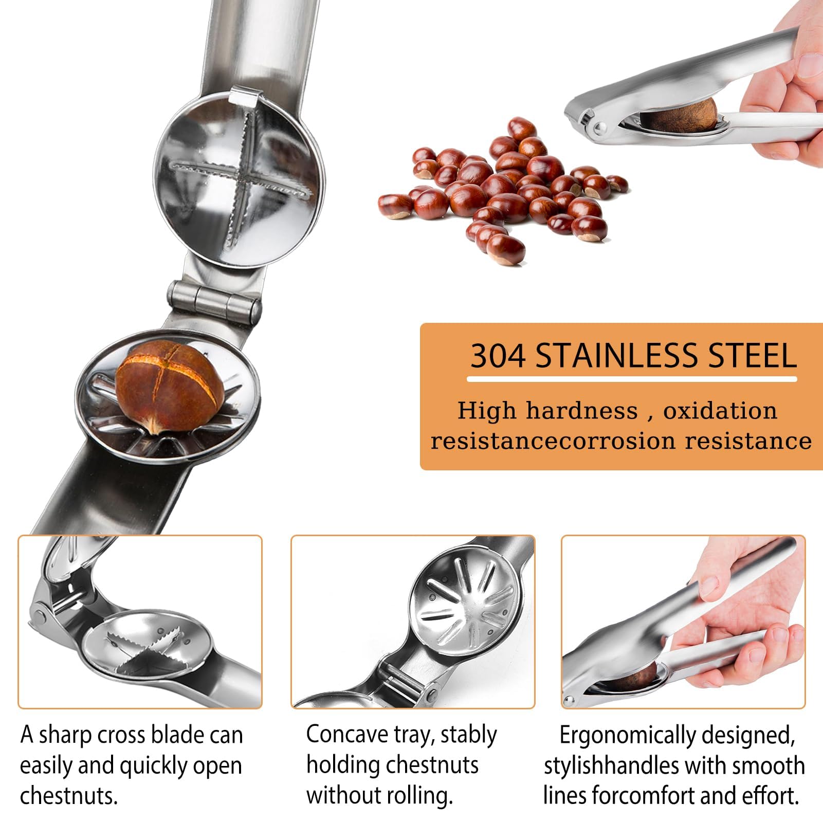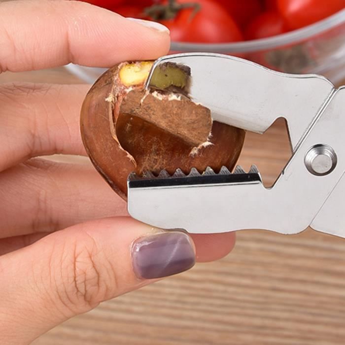 【Décapage pratique】Pince a chataigne l'intérieur de l'ouverture a un design dentelé avec un tranchant transversal,est plus tranchante plus solide, Une simple pression peut faire apparaître la châtaigne comme une ouverture transversale, ce qui est pratique pour manger. L'acier inoxydable a une dureté élevée, l ne se déformera pas et ne se corrodera pas même avec une utilisation prolongée. Cadeau Cuisinier Châtaigne Eplucheur De Chataigne Caneem Pince Chataignes, Inoxydable Pince à Châtaignes, Outil Coupe Coupe Chataigne Coupe Marron Pinces Ouvre-Noix Pince À Craquelins Ouvre-Châtaigne En Noyer, Coupe 【Conception du Plateau Rond】 La coupe chataigne sert principalement à mieux stabiliser les aliments tels que les châtaignes ou les noix et à éviter les problèmes de glissement des aliments pendant l'utilisation. Coupe chataigne un excellent cadeau pour les amis et la famille de l'amateur de cuisine idéal. La lame dentelée est tranchante et solide, et peut maintenir l'effet tranchant après plusieurs fois. 【Cadeau Approprié】Cet pince à chataigne pas seulement un nécessaire quotidien pour la famille, mais aussi un outil permettant de gagner du temps et de la main-d'œuvre pour les boulangeries, les restaurants, les confiseries, etc. Pinces Ouvre-Noix Pince À Craquelins Ouvre-Châtaigne En Noyer, Coupe... 【Conception de sécurité】La coupe chataigne chataignes est ergonomique, avec une conception à effet de levier, confortable et pratique. -Le coupe chataigne a une surface lisse, une poignée antidérapante, confortable et pratique, ne vous blesse pas la main lors du décorticage des noix. La conception dentelée peut facilement gérer une variété de châtaignes.