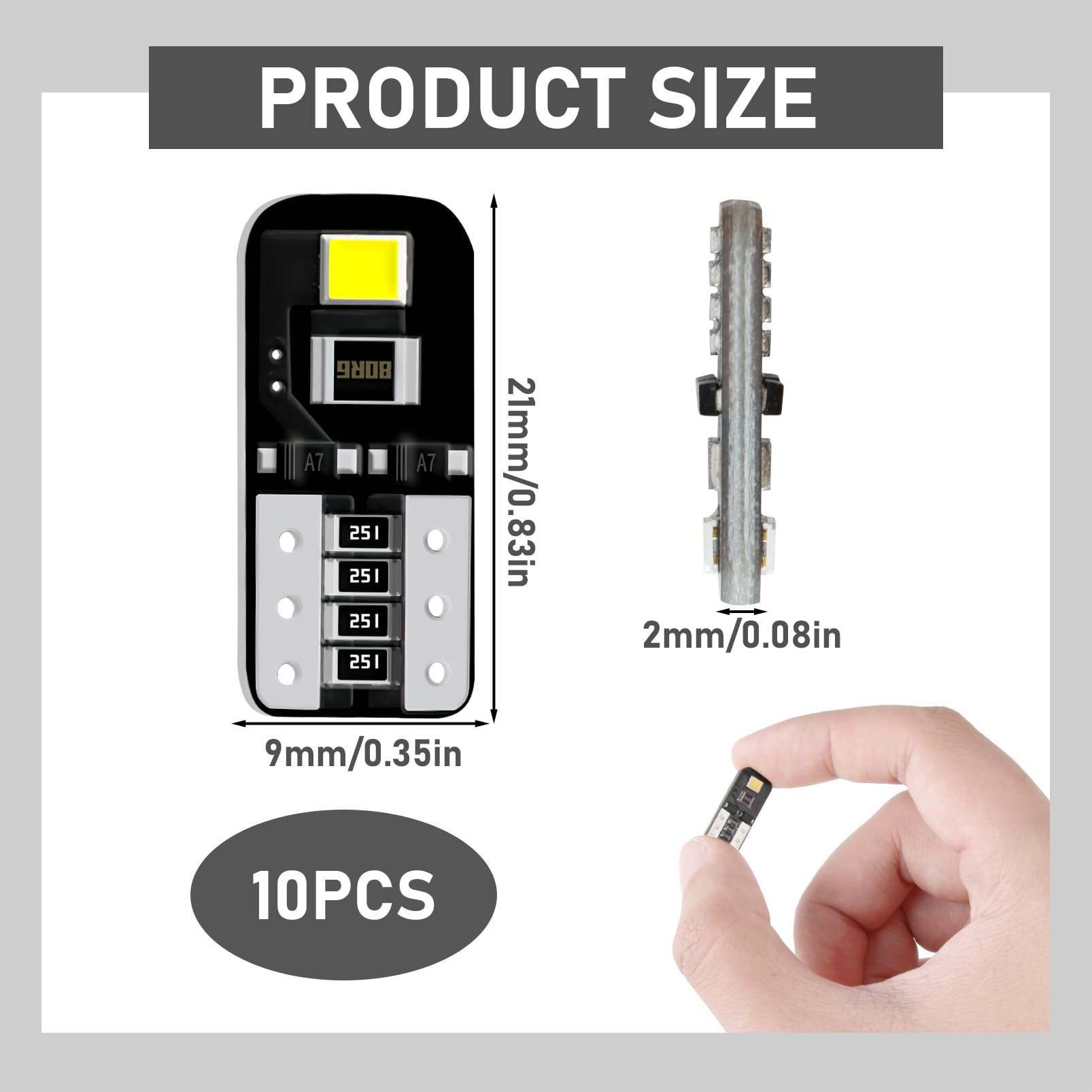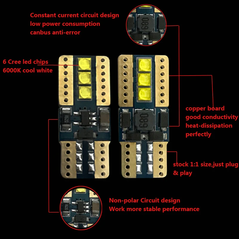 Achetez 10X W5W LED Canbus T10 lumières de voiture COB verre pièces intérieures ampoules 6000K blanc Auto plaque d'immatriculation lampe dôme lecture lumière 12V sur Aliexpress pour Économie d’énergie: Ces ampoules consomment seulement 2,6W par ampoule, ce qui contribue à une économie d’énergie significative par rapport aux ampoules halogènes classiques. Led Voiture Interieur ANTEMOON Ampoules T10 W5W LED CANBUS 12V Jaune Ambre 194 501 168 2825 18-SMD 2015 Chipset Wedge Intu00e9rieur De Voiture Du00f4me Porte Courtoisie Coffre Plaque D'immatriculation Lumiu00e8res, 6 Piu00e8ces Ampoule Led Voiture Haute luminosité: Chaque ampoule LED T10 produit jusqu’à 98,2 lumens, offrant une lumière blanche pure de 6500K, idéale pour remplacer les ampoules halogènes traditionnelles. Idéales pour les lumières de dôme, les feux de position, les feux de courtoisie, les lumières de boîte à gants, et bien plus encore. Elles conviennent à de nombreuses positions de montage Ampoules Led T10 W5W, 10 pièces, pour Renault mégane 2/3 Duster, Logan... Ampoules T10 LED W5W Veilleuse Blanche 6000K Canbus Gel lampe 4 smd pour Voiture - Xenon Discount Si l'ampoule ne s'allume pas, essayez de la retourner pour un fonctionnement optimal Applications multiples: Ces ampoules T10 sont adaptées à une large gamme d’utilisations intérieures dans les véhicules. Cette solution est environ deux fois plus lumineuse, garantissant une visibilité accrue sans surchauffe
