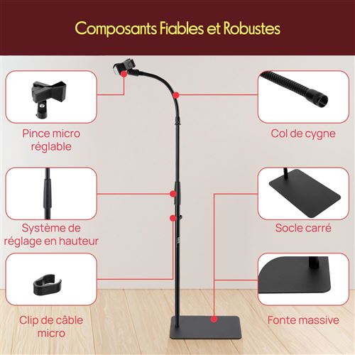 Idéal pour artistes et musiciens nomades. Trépied flexible pour microphone HONScissor, 55cm" - Test et Avis Sa base trépied solide et ses pieds en caoutchouc antidérapants garantissent une stabilité maximale, même sur surfaces glissantes. KIT COMPLET POUR MICROPHONE : Comprend un support trépied, un col flexible, un clip pour micro, un clip pour câble et un adaptateur 5/8. Le clip pour câble inclus garde votre matériel bien rangé pour une expérience propre et efficace à chaque usage. Adaptateur universel 5/8” inclus, compatible avec la plupart des micros. AJUSTEMENT DE HAUTEUR POLYVALENT : Avec une plage de 133 à 201 cm, ce support convient à divers besoins de scène ou studio. Le filetage est standard (5/8 pouce), donc compatible avec la plupart des micros. C'est pliable, donc facile à transporter pour tes concerts, répets, ou même en... Fabriqué en acier résistant, il maintient votre micro en toute sécurité, même en usage intensif. Pyle Pied de Micro - Support de Micro - Trépied - Support Microphone Pyle Support Micro Hauteur Variable Microphone Support De Bras Réglable Avec Pince à Micro, Support Micro Sur Pied Sa structure en acier résistant garantit stabilité et longévité. Il inclut un adaptateur universel 5/8 et un clip pour câble pour une installation propre et organisée. Ce support combine performance, praticité et fiabilité pour tout artiste ou conférencier. Sa base trépied assure la stabilité, et son col flexible permet un positionnement précis du micro. Sa structure légère permet un rangement et un transport aisés.