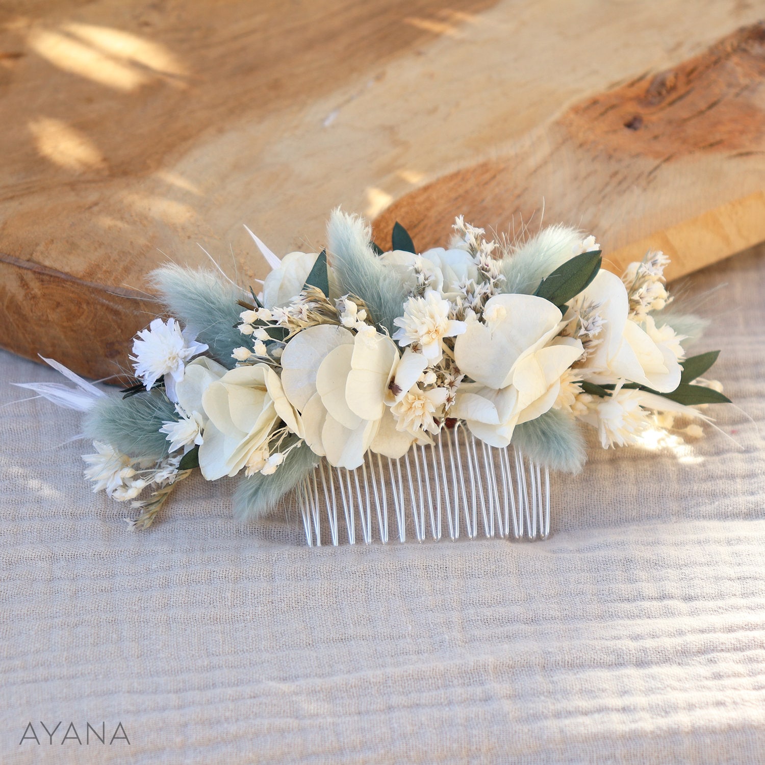 Les dimensions de 14 x 8 cm garantissent un effet optimal et une visibilité pour une apparence parfaite. Découvrez nos peignes bijoux en plaqué or ou argent. Une touche chic et parisienne pour illuminer les coiffures de tous les jours ou des grandes occasions Funalix | Peigne à cheveux vert de mariée - Une élégance intemporelle pour votre look festif Le peigne à cheveux Funalix en vert élégant allie charme vintage nostalgique à l'élégance moderne. Idéal pour les occasions festives et les bals - Cet accessoire de cheveux polyvalent est l'accessoire de cheveux parfait pour les mariées et les demoiselles d'honneur. Le cadeau parfait pour une femme spéciale : en tant qu'accessoire de cheveux élégant, ce bijou de mariée le plus fin est un excellent cadeau pour vos proches. En même temps, il sert de bijou glamour pour les soirées formelles, les fêtes et les galas festifs. Points forts du produit : design élégant : ce serre-tête vintage vert unique se distingue par sa forme inspirée de la nature et ajoute une touche distinctive et élégante à votre look. Peignes À Cheveux De Mariage En Perles De Cristal, Pinces À Le motif détaillé de feuilles et de fleurs crée un superbe accessoire de cheveux en cristal qui rehaussera n'importe quel look. Nos accessoires de cheveux de qualité supérieure pour mariée avec son design délicat de feuilles et de fleurs et ses accents de cristal étincelants sont parfaitement mis en valeur. Utilisations multiples : parfait comme accessoire de cheveux de mariée, demoiselle d'honneur ou décoration de fête pour les mariages, bals, et autres occasions spéciales. Bijoux de cheveux | Peignes Peigne cheveux pour mariage : l'élégance d'un bijou d'exception Le peigne cheveux pour mariage est l'accessoire idéal pour sublimer une coiffure avec délicatesse et raffinement. À la fois pratique et ornemental, il apporte une touche sophistiquée sans jamais voler la vedette à la robe ou au maquillage Peigne Cheveux Mariage Femme Peigne En Fleurs Stabilisées Accessoires De Mariage Coiffure--Thalia Vert Eucalyptus Blanc Doré - La Fée Qui Danse Coiffe Demoiselle D'honneur Artisanat de qualité supérieure : fabriqué avec des matériaux durables et doux pour la peau pour un confort et une durabilité exceptionnels.