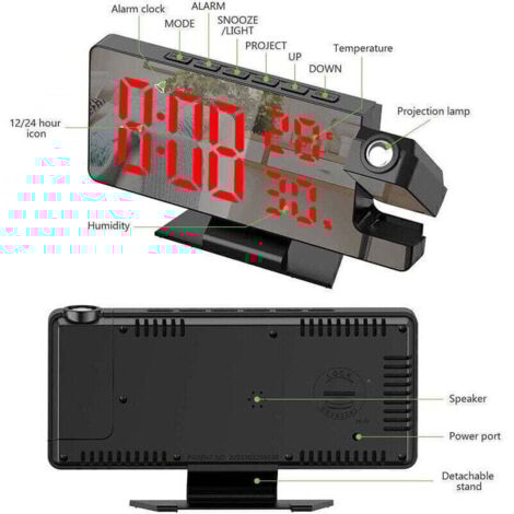 Avec une distance de projection de 1 à 5 m, profitez de la clarté et de la commodité de cet appareil à son plein potentiel Type d'affichage : numériqueType d'affichage : LEDFonctions spéciales : Thermomètre, prévisions météo, calendrier perpétuel, alarme, mesure d'humiditéÉtanche : nontype de batterie : batterie (non incluse)Type de mouvement : électroniqueMatériau du boîtier : PPListe1 x réveil1 x câble USB Réveil Projecteur Avec Température Miroir/noir à retrouver en drive ou livraison au meilleur prix dans le rayon Radio et radio-réveil. Profitez de nos promotions et faites vous livrer ou venez retirer vos courses rapidement dans votre magasin Promo Krontaler Réveil à Projection chez Aldi Obtenez une expérience de lecture de l'heure facile avec le réveil à projection Projecton Rével Utlsaton Tutorel - YouTube Utilisations multiples : notre réveil à projection suit silencieusement l'heure et la température pour garantir un sommeil réparateur dans les chambres de bébé, les chambres, les crèches, les incubateurs, les sous-sols, les entrepôts et les serres. Notre réveil à projection est équipé de capteurs de précision pour assurer une précise de l'environnement Réveil Hygromètre Enowelir Réveil Projecteur LED Avec Horloge Numérique Double Alarme Ecran Miroir Et 7 Boutons Snooze 4 Luminosites 1224h Maison Bureau 91993280 Horloge Projection Murale Projection n'importe où : soyez témoin de l'affichage éclatant de ce réveil à projection, projetant des visuels clairs où vous le souhaitez. De plus, il affiche une plage d'humidité comprise entre 20 et 90 %. SpécificationEst-ce double face : simple faceStyle: décontractéAspect : rectangulaireLieux applicables : salon, chambre, bureau, cuisine.
