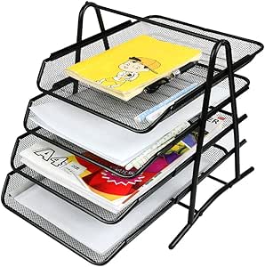 Dimensions : 30 x 35 x 31 cm (l x P x H), 6,2 cm par couche Bac à courrier en maille à 4 niveaux avec plateaux coulissants pour accessoires de bureau, fournitures de bureau et rangement de fichiers, noir Organisateur à 4 niveaux] : ce bac à courrier en maille à 4 niveaux est un organisateur de papier de bureau idéal avec des plateaux coulissants pour les accessoires de bureau, les fournitures de bureau et le stockage de fichiers Pratique : ce trieur de papier est parfait pour organiser des fichiers A4 ou tout autre document de petite taille, papiers, magazines, cahiers, dossiers et autres documents La poignée sur le dessus signifie également que vous pouvez le déplacer si vous en avez besoin Fabriqué en maille métallique de haute qualité - Robuste, durable et élégant Espace pour les grands : idéal pour les dossiers, lettres, papier de format A4, papeterie, accessoires de bureau Libérez de l'espace : ces organiseurs de bureau peuvent contenir beaucoup de choses sur votre bureau. Corbeilles à courrier coulissantes : ce porte-documents A4 en maille à 4 niveaux est livré avec 4 plateaux coulissants, et les plateaux coulissants peuvent être retirés pour trier les documents. Organiseur 4 Niveaux Format A4 Noir Bac à Courrier Empilable, 4 étages En Métal, Organiseur De Bureau Rangement Cahier 24x32