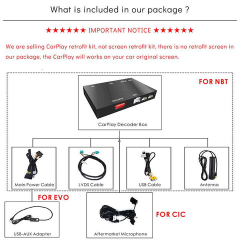 Module de mise à niveau d'écran Lexson pour BMW. Guide d'installation (français non garanti). 1 câble MIC, 1 câble AUX. Commencez un chat agréable avec votre famille et vos amis., Goole Assistant. Plus d’informations : Ce produit a une garantie d’un an. Allumez la navigation, trouvez la meilleure route et saisissez les conditions routières en temps réel. Saisissez les dernières conditions routières de chaque rue et planifiez les meilleures itinéraires afin que vous passiez moins de temps sur les routes encombrées., Musique., Toute votre musique., Magnifiquement organisé. Divertissement Laissez-le vous accompagner dans l'après-midi ennuyeux., Communiquer. Attention : Interface vidéo CarPlay spéciale pour l’unité centrale BMW CIC System avec écran 6,5 » 8,8 » 10,25 » EQ réglable avec la meilleure qualité audio. Laissez votre téléphone vous montrer comme vous le souhaitez. Fonctions principales : Fonctionnement de la clé identique à la voiture d'origine. Connectivité sans fil : Le décodeur compatible avec le système BMW CIC est un kit d’adaptation CarPlay et Android Auto qui ajoute les fonctionnalités CarPlay et Android Auto aux véhicules standard. Modèles compatibles : BMW Série 2010 1 2 3 4 5 X1 X3 X4., BMW 2011 Série 1 2 3 4 5 X1 X3 X4., BMW 2012 Série 1 2 3 4 5 X1 X3 X4., Remarques : Fonctionne pour BMW tous les modèles avec système CIC 2010-2012., Téléphone La route vous appelle. Kit CarPlay Android Auto BMW LEXXSON Wireless CarPlay Android Auto Retrofit Kit Pour BMW Series 1 2 3 4 5 6 7 X1 X3 X5 X6 Z4 Mini Avec Support Du Système CIC Mirror Link Wireless Carplay For Bmw Appuyez et maintenez pendant 3 secondes pour changer le système., 3., Appuyez longuement pour entrer dans la vue avant. Fonctionne avec le bouton d'origine sur la commande au volant. Informations : Dimensions de l'emballage : 26 x 21 x 8 cm. Vue de haut Vous pouvez voir son design, et vous pouvez également voir ses ports. Appuyez et maintenez pendant 3 secondes pour réveiller Siri. Méthodes de commande multiples : commande via les commandes au volant et la commande automatique (*en fonction des spécifications du véhicule) Le câble d'alimentation Quadlock principal se connecte à l'alimentation, L'écran OEM connecte 2 ports LVDS par câble LVDS à 4 broches OEM. Vous permet de profiter de la meilleure musique. The kit is plug and play, just connect your phone wirelessly to use CarPlay or Android Auto functionality [Wide Compatibility] Support a wide range of BMW series models, including 1 2 3 4 5 6 7 series X1 X3 X5 X6 Z4 MINI 2008-2014 Donnez des instructions et laissez Google Assistant vous fournir des services., Naviguer. LEXXSON Smart CarPlay Ai Box Android 13 Support Netflix YouTube Split Screen Wireless Android Auto TV Box 4G LTE WiFi Hotspot