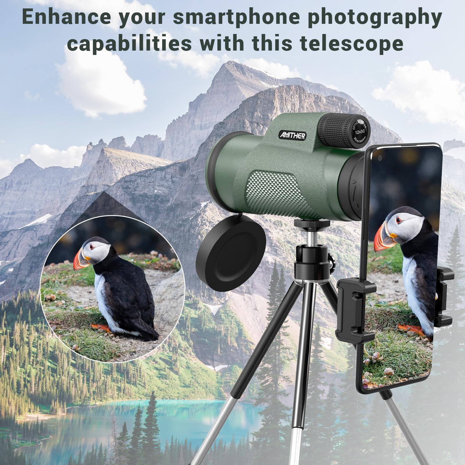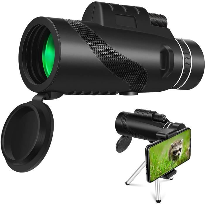 Monoculaire polyvalente haute définition:Améliorez vos aventures en plein air grâce à une qualité visuelle inégalée. Télescope monoculaire HD 12 x 50, puissant et étanche, idéal K&F Concept Telescope Monoculaire 12X50 HD Étanche BAK4 Prisme Revêtement Vert Téléscope avec Interface Trépied pour Observation Oiseaux, Chasse, Randonnée (IP66 Étanchéité Noir Environnemental Rubber Lens Barrel:Surface designed with detailed frosted texture, effective anti-slip and anti-sweat, ergonomic design, non-slip thumb groove Prisme BAK4:Oculaires et lentilles d'objectif à revêtement multicouche FMC, taux de transmission de la lumière jusqu'à 99 %, reproduction maximale des couleurs de l'image , niveau d'étanchéité IP66, étanchéité à l'eau uniquement pour la durée de vie 12 * 50 Grand Grossissement:Objectif de 50 mm, Transmittance de 99%, vous aurez un champ de vision plus grand et plus clair pour les beaux paysages Profitez d'une vue cristalline dans n'importe quel environnement Le champ de vision ultra-large est de 98 / 1000m et l'angle de vision est de 5,6°, fournissant une lumière complémentaire plus adéquate et un champ de vision plus large Télescope monoculaire, monoculaire HD 12 × 50 haute puissance avec support pour smartphone et trépied étanche HD FMC Bak4 prisme pour observer les oiseaux des jeunes, chasse, camping, sports de plein air