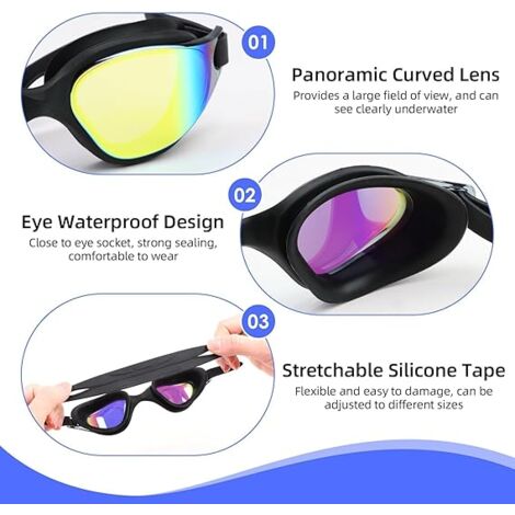 Lunettes De Natation Panoramiques Lunettes De Natation à Protection UV Lunettes De Natation Pour Adultes Lunettes Piscine Protection Uv Adulte Homme Femme 【ANTI-BUÉE ET PROTECTION UV】 Les surfaces intérieures des verres sont revêtues de la dernière technologie de traitement environnemental anti-buée, qui fournit une protection maximale anti-buée pour les lunettes et est sans danger pour les yeux et la peau. Nous avons analysons tous les produits en sports et Loisirs de la marque Funní Día et trouvons les 8 meilleurs choix pour vous. Lisez l'avis Funní Día avant d'acheter Sport - Découvrez notre offre Lunettes de natation à vision panoramique, sans fuite, anti-buée, protection UV, Lunette Piscine Adulte hommes femmes Verres transparents : offre une protection et une vision claire sans changer l'apparence des couleurs. 【SPORT ET MODE】Du concept du design à la fabrication, Funní Día met l'accent sur les détails et la qualité, afin de fournir aux clients des produits de sport de haute qualité et à la mode Nos 5 meilleurs Funní Día Lunettes De en France - Août, 2025 【GARANTIE ANTI-FUITE】 Le joint épais et le design ergonomique des lunettes offrent une aspiration fine pour garantir un ajustement parfait sur toutes les formes de visage et éviter les fuites gênantes Incassables : les verres en polycarbonate restent solides même dans les conditions les plus difficiles. Utilisation recommandée : Verres miroir : réfléchissent la lumière loin de vos yeux. Ne convient pas pour les journées lumineuses ou les environnements faiblement éclairés. Convient pour la natation en plein air, en particulier les jours de baignade. En suivant ces étapes, vous pouvez prolonger la durée de vie du revêtement anti-buée : 1., N'oubliez pas de rincer les lentilles à l'intérieur pour que le revêtement puisse fonctionner. Conseils pour éviter la buée : Tous nos verres de lunettes sont recouverts d'un revêtement anti-buée. Efficace : la protection UV et le revêtement anti-buée améliorent votre expérience de natation.