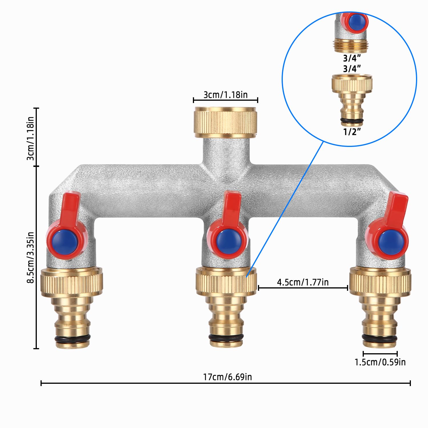 Le robinet triple sortie 3/4 pour un meilleur resserrement et pour prévenir les fuites et un meilleur réglage de l'eau en entrée et en sortie, ne doivent pas se soucier des fuites. Les joints hexagonaux améliorés minimisent la résistance au flux d'eau et assurent une connexion plus stable. Données techniques : convient pour les distributeurs d'eau courants de robinet 3/4" à 3 voies en Europe, longueur : 167,5 mm, largeur : 50 mm, hauteur : 85 mm, diamètre de filetage 3/4" (ø 26 mm), pour la répartition du débit d'eau sur les vannes à trois voies avec filetage extérieur 3/4" (diamètre 26 mm Répartiteur avec robinet (distributeur 2 voies avec robinet 3/4) 2 voies en laiton... Large Compatibilité: Universellement adapté pour les robinets d'eau standard UE 3/4 pouces et une grande variété d'applications. Kärcher Connecteur 3 voies en laiton | Kärcher Center Maes Matériaux de Haute Qualité: Les distributeur d'eau 3 voies en laiton sont fabriqués en laiton de haute qualité pour protéger les équipements contre les rayures, la corrosion, les embouteillages et autres dommages après utilisation et ont une longue durée de vie. Caractéristiques de Spécification: Convient pour distributeurs d'eau 3/4 robinet distributeur 3 voies, Longueur: 167,5MM, Largeur: 50MM, Hauteur: 85MM, Diamètre de filetage 3/4 (ø 26mm), pour la distribution du flux d'eau sur des valves à trois voies avec filetage extérieur 3/4 (ø 26mm). Connexion Multiple Eau Distributeur En Y Distributeur D'eau En Laiton De 3/4 Pouce, Distributeur De Raccordement D'eau Robinet Triple Sortie 3/4 Jardin Spécifications : Matériel: laiton diamètre du fil 3/4 (ø 26mm/1., 02inch) Longueur: 167,5mm / 6., 57inch Largeur: 50mm / 1., 96inch Hauteur: 85mm / 3., 34inch Paquet inclus : 1 x distributeur d'eau 3 voies en laiton Mode d'emploi Répartiteur de raccordement d'eau en laiton Réglez indépendamment la quantité d'eau nécessaire pour chaque connexion et éteignez ou mettez en marche individuellement. Le robinet distributeur 3 voies peut également être utilisé pour créer des décorations d'eau spéciales telles que des fontains, des douches et des robinets d'eau.